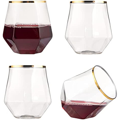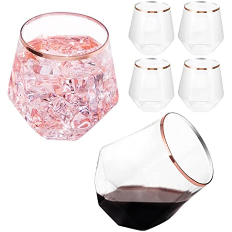 Product Description DIAMOND WINE GLASS:Inspired by diamonds, these silver stemless plastic wine glasses can be placed squarely or sideways, as...