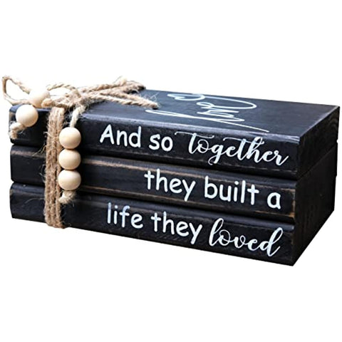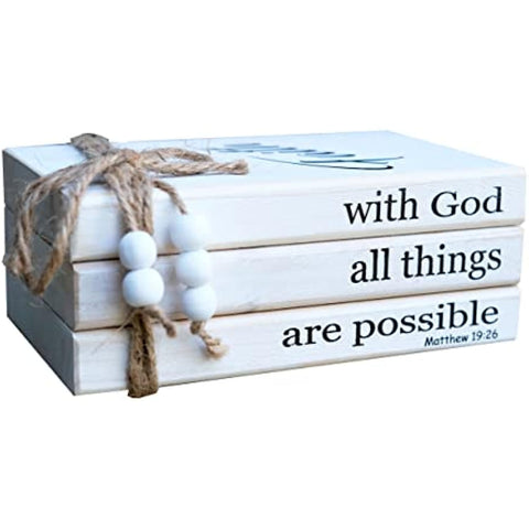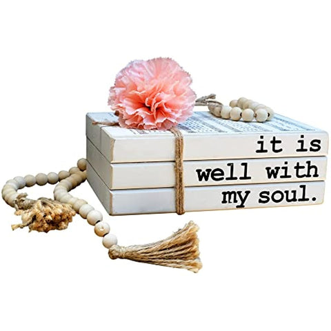 Product Description HANDCRAFTED WOOD BOOK STACK: This farmhouse stacked books decor consists of 3 books made of solid cedarwood. White...