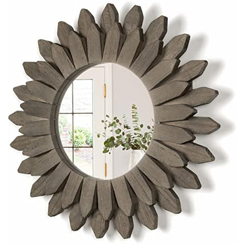 Product Description Rustic Wall Decor for Living Room—This decorative mirror made of natural solid wood, weathered walnut color features a...