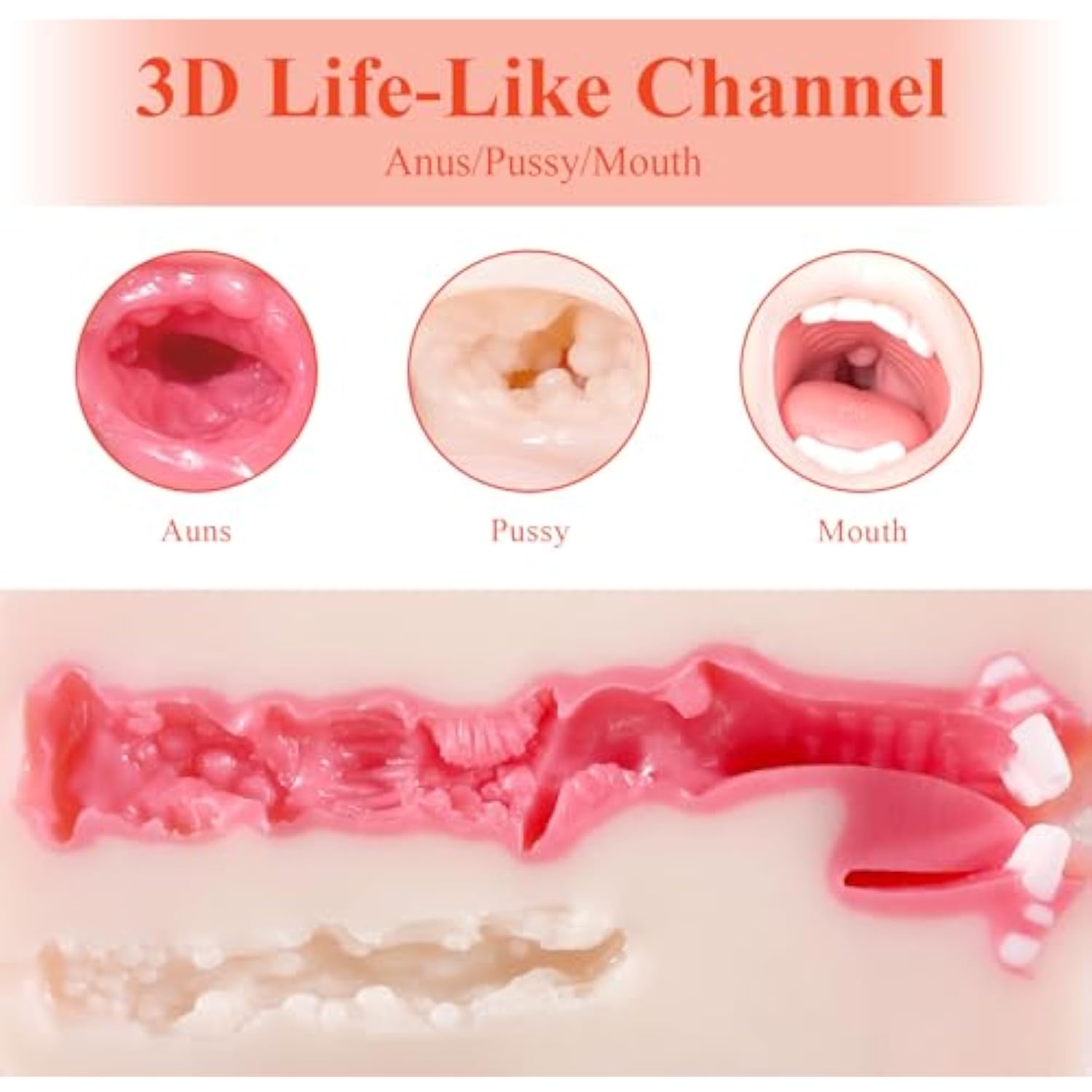 1.45Lb 3 In 1 Male Masturbator, Pocket Pussy Sex Toys For Men With Sexy Mouth, Realistic Vagina And Tight Anus, Adult Sex Doll For Male Grace (Fair)