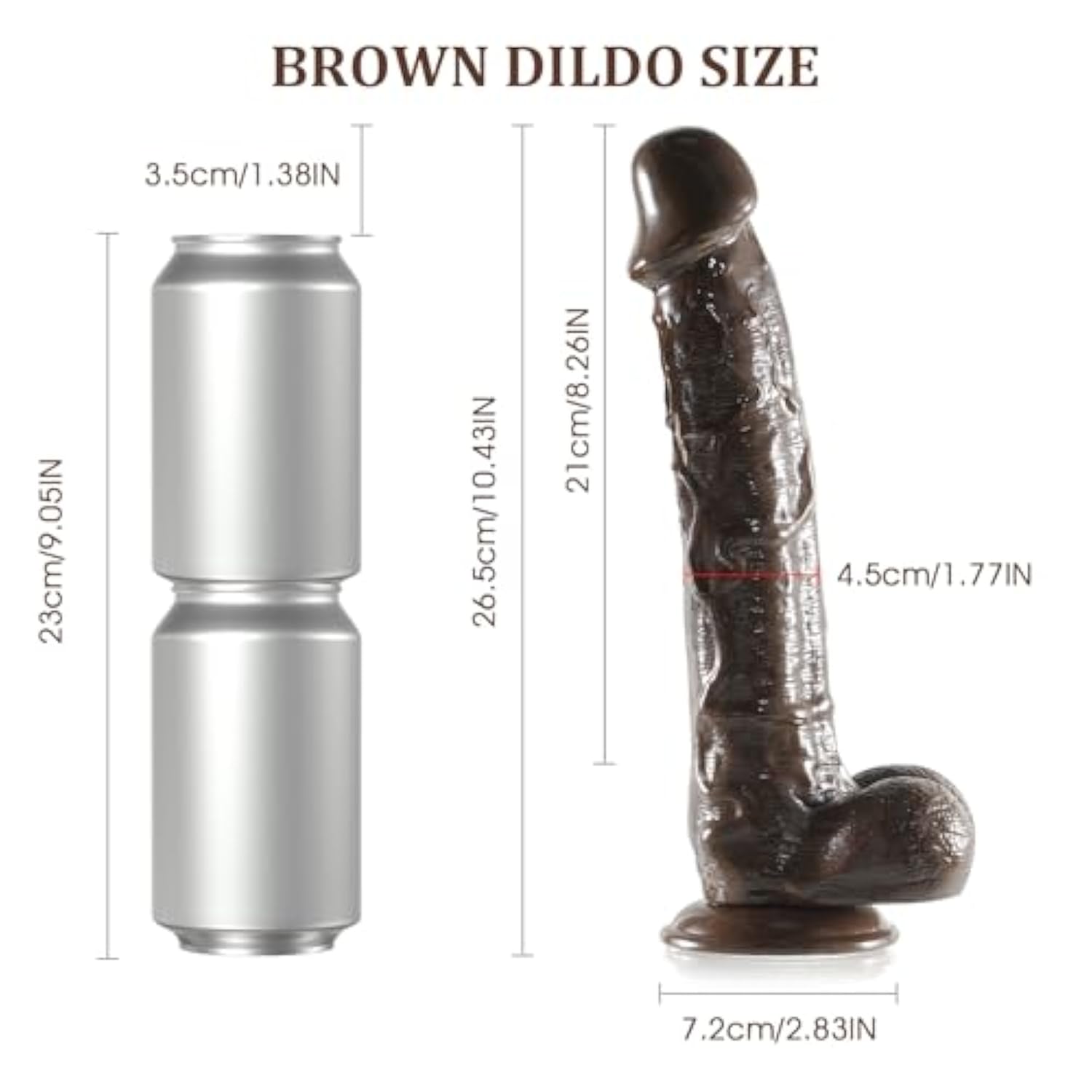| G Spot Dildo Size: This Long Dildo Has A Total Length Of 26.5Cm/10.43In,Can Be Inserted 21Cm/8.26In,Diameter Of 4.5Cm/1.77In.Suitable For Female Masturbation Or Male Deep-Throat Training | | Body Safe Material Dildo: This Dildo Is Made Of Upgraded Pvc,Odorless, Fleixble Material, Can Be Bent To Any Angle, And The Suction Cups Will Not Be Deformed After Many Times Of Use Like Tpe Jelly Dildo, As Well As Silicone Dildo | | Powerful Suction Cup Dildo - Suction Cup Dildo With A Powerful Suction Cup Base For Hands-Free Play,Can Be Attached To Any Smooth Hard Surface (Excluding Cement Walls) Whether In Bathroom, Kitchen,Bedroom,Living Room,Office | | Realistic Dildo - This Large Penis Has Lifelike Head And Exquisite Veins,Textured Shaft And Lifelike Ball,Also Can Be Used With Strap-On (Strap-On Not Included) | | Discreet Packing With Brown Dildo - - It Is Our Duty To Protect The Privacy And Security Of Each Buyer. Big Anal Dildo Will Be Comes In Discreet Packaging, No Any Sex Toys Anal Dildo Will Be Comes In Discreet Packaging, No Any Sex Toys / Sexual Life Related Displays | |