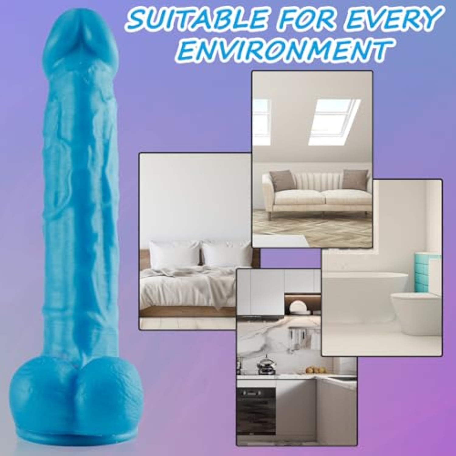 10.6 Inch Realistic Dildo Big Thick Silicone Dildos Sex Toy For Women Men Couples, Lifelike Soft Anal Dildo With Strong Suction Cup For Hands-Free, Realistic Fake Penis For Vagina Anal Play(Blue)