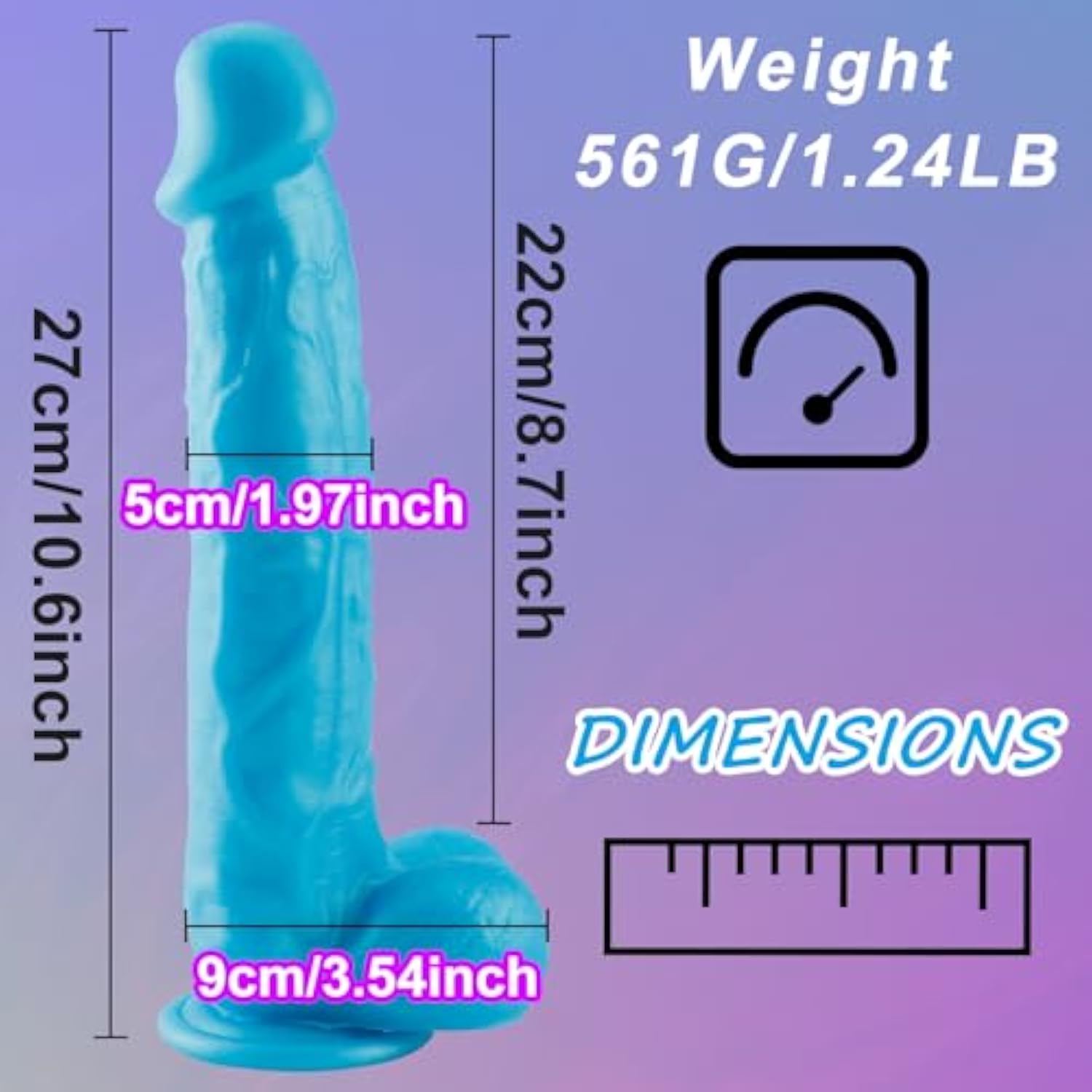 - ???10.6 Inch Blue Dildo?10.6 Inch Dildo Can Be Inserted 8.7 Inches. This Monster Dildo Is Soft And Sexy And Won'T Hurt Your Sensitive Parts. It Will Give You Various Stimulation Through The Changing Angle. This Perfect Adult Toy Suitable For Women G-Spo