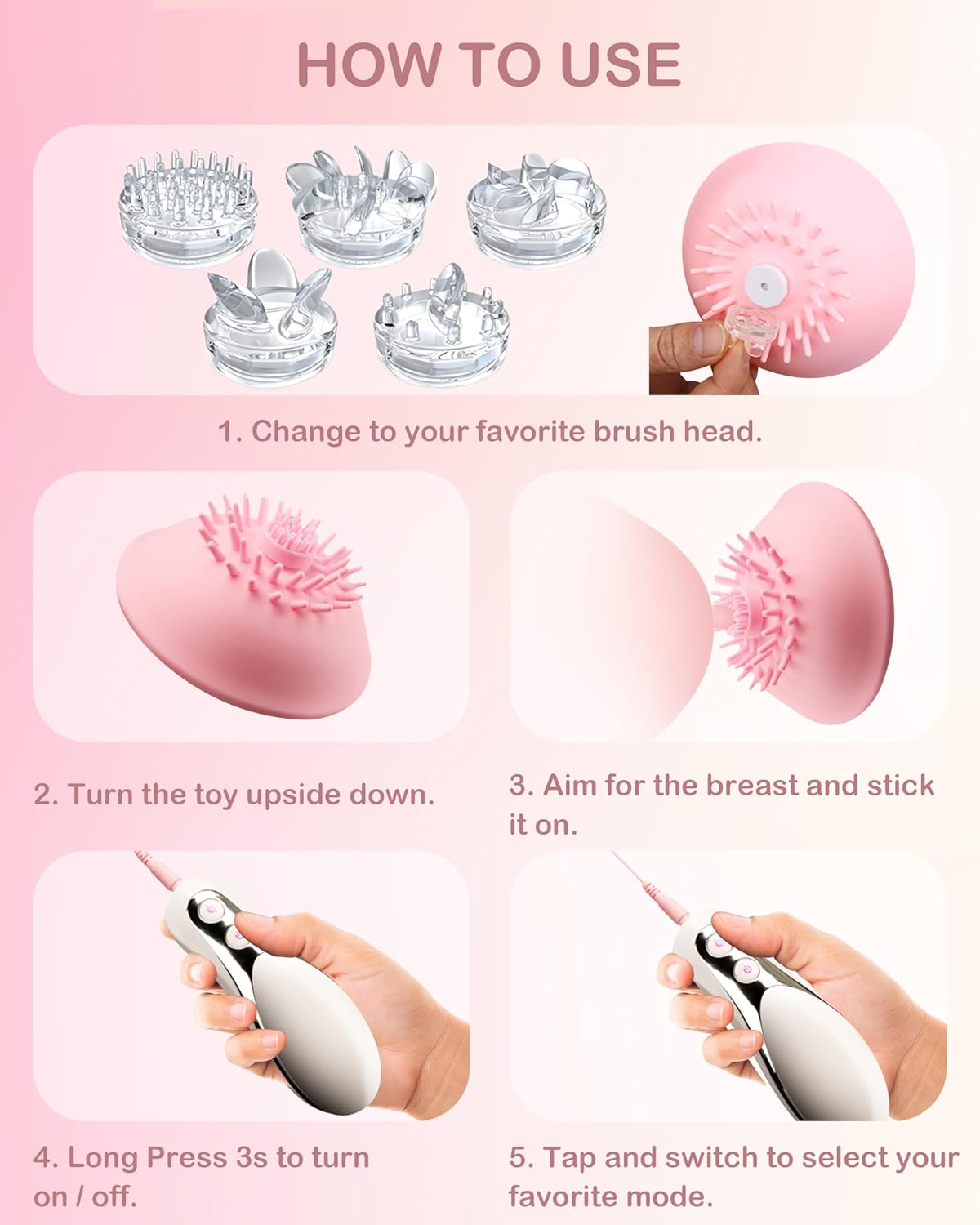 10 Brush Heads Wearable Nipple Stimulator with 10 Rotating Modes for Women