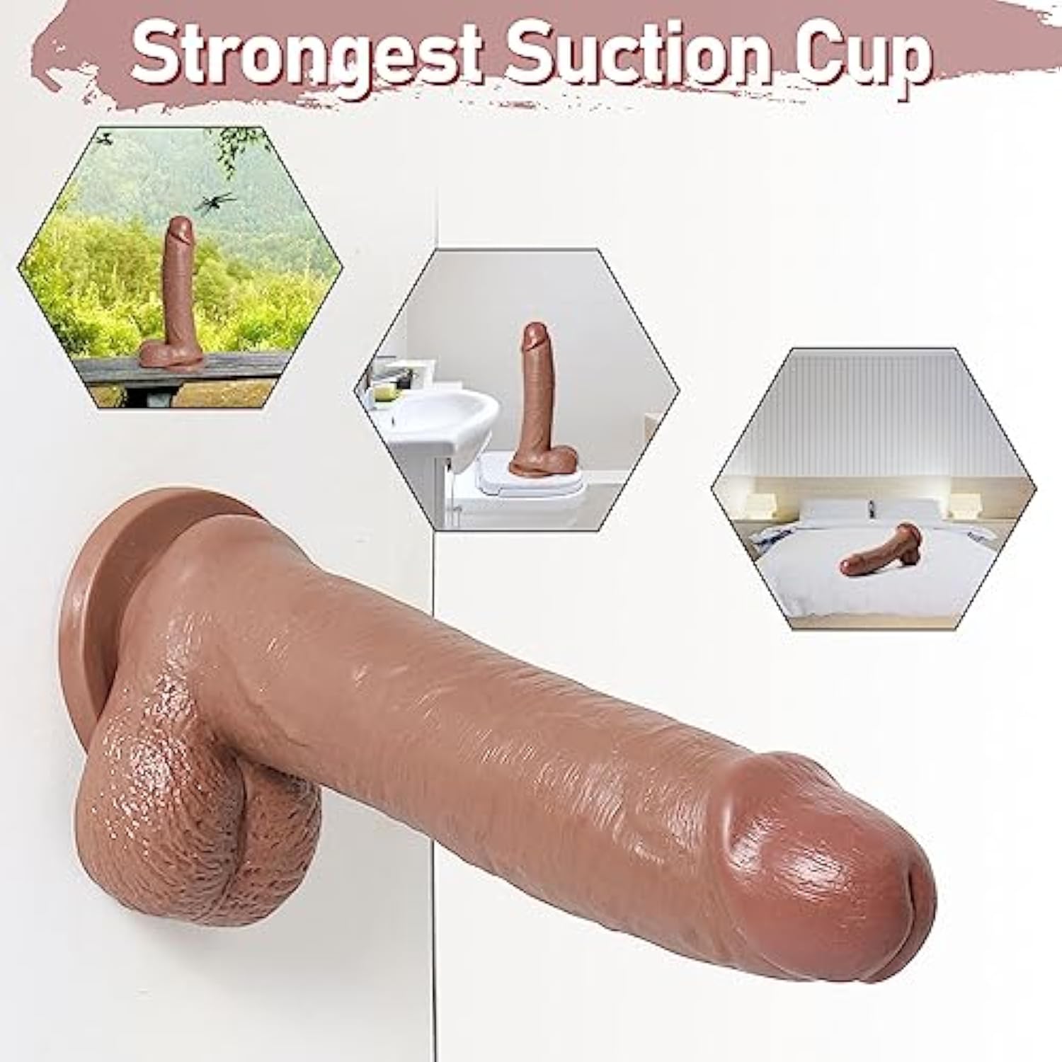 10 Inch Thick Dildo Huge Sex Toys For Women,Realistic Large Silicone Dildos Hands-Free Play Sex Toy,Lifelike Big Fake Penis Soft Suction Cup With Balls For Male Or Female G-Spot&Anal Play (Brown)