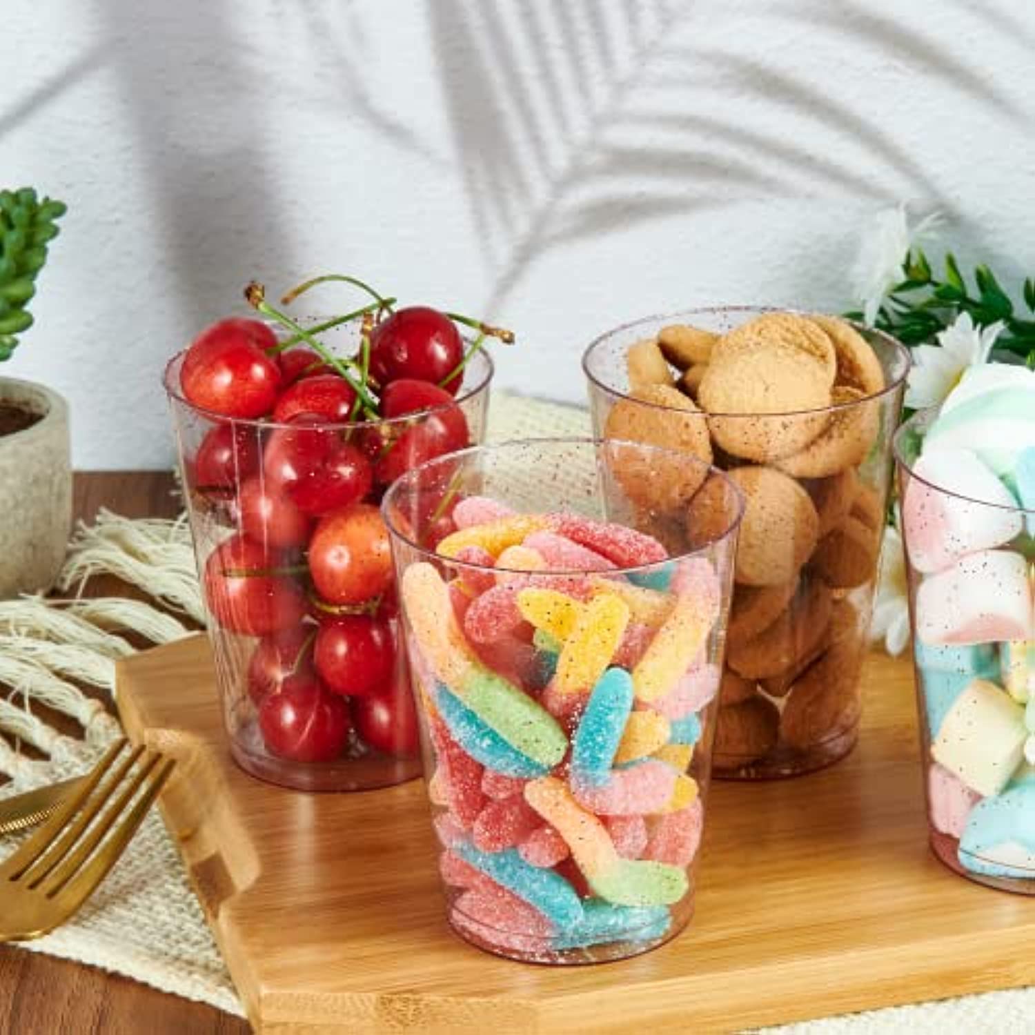 - Elegant Design: 100pack purple glitter Plastic Cups give you a great value, purple glitter plastic tumblers are great for Alcohol Drinking, Mini Desserts, Dips, Catering, Party Games, Decorations, Weeding, Events, And Everyday Use. These amazing glitter cups are made to make a stylish splash for superior elegance.