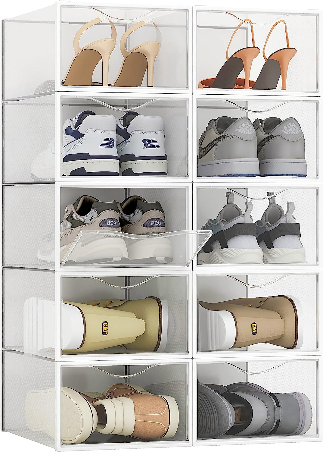10 Pack Shoe Storage Boxes, Clear Plastic Stackable Shoe Organizer Bins, Drawer Type Front Opening Sneaker Shoe Holder Containers
