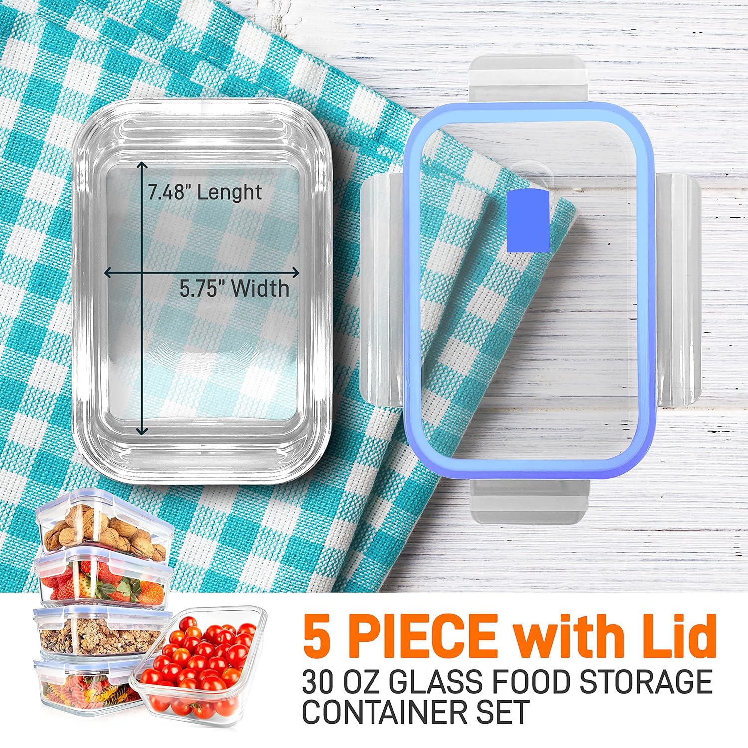 10-Piece Glass Food Containers - Stackable Superior Glass Meal-Prep Storage Containers, Newly Innovated Leakproof Locking Lids W/Air Hole, Freezer-To-Oven-Safe,Blue