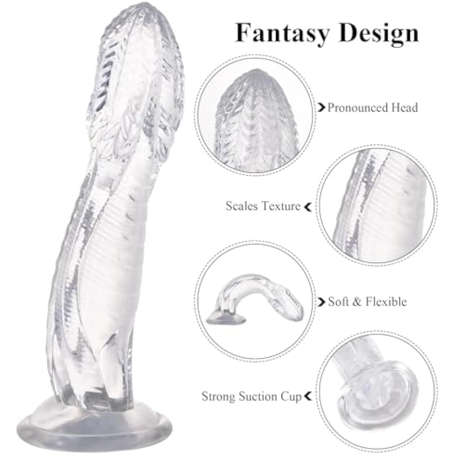 - ?Snake Shape Jelly Dildo?Starting With Snake-Shape Head, The Depressions And Protrusions Like Scales In The Middle, Serpenoid Curve,You Could Feel The Texture Of The Bumps On Every Thrust And Tail Bring A Unique Stimulating Experience During Insertion.