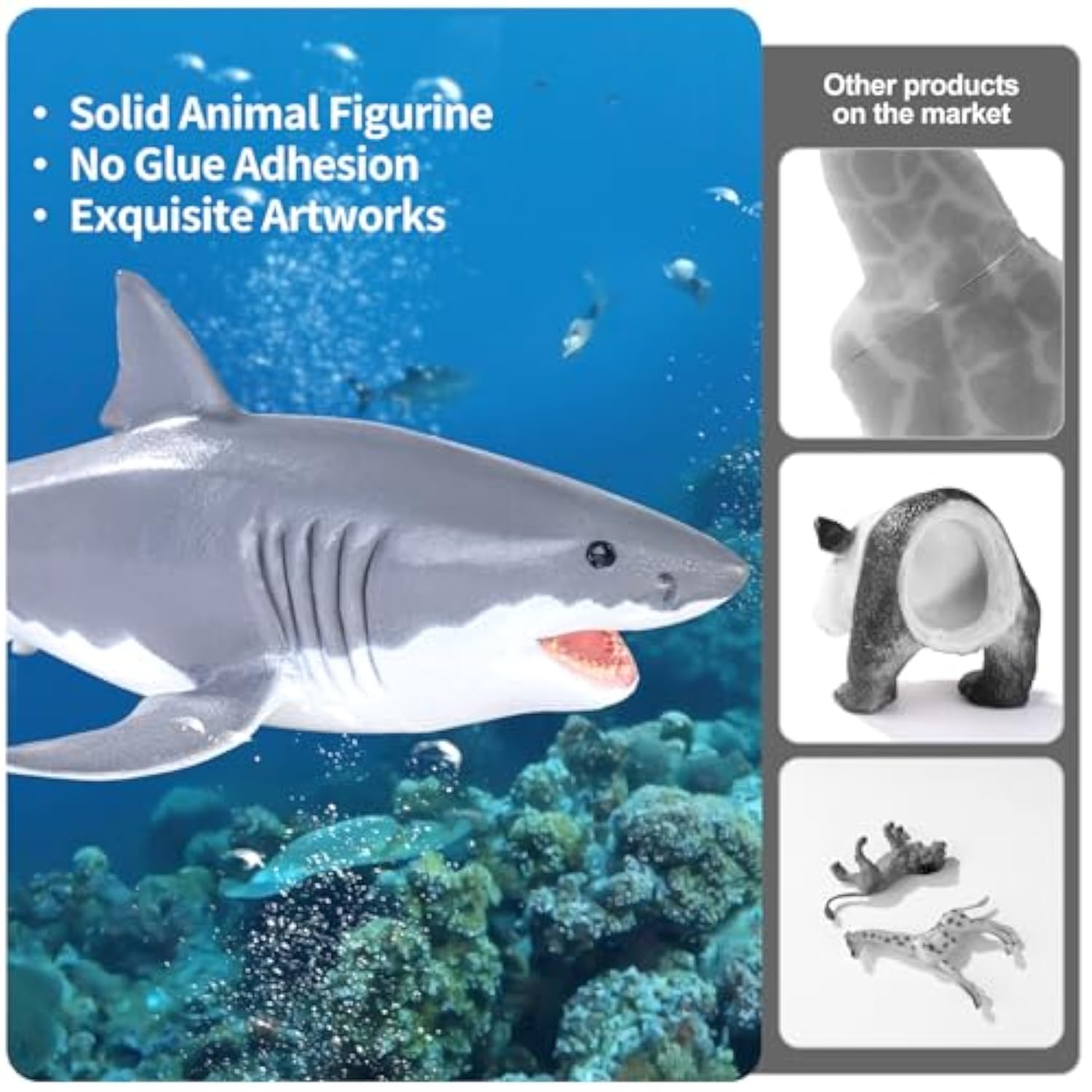 | 5-8" Realistic Shark Figurines: 10Pcs Large Shark Toys For Boys With Great White Shark, Whale Shark, Hammerhead Shark, Tiger Shark, Blue Shark, Blacktip Shark, Mako Shark, Spotted Shark, Thresher Shark, Goblin Shark Figurines Toys For Kids. | | Kids Come First: These Sea Animal Toys For Kids Are Made From Bpa-Free, Non-Toxic, Solid Pvc. Let Your Child Explore The Sea And Spark Their Imagination. There Shark Figurnes Are Perfect For Kids | | Exquisite Hand-Painted Details: Each Ocean Animal Toy Is Hand-Painted With Realistic Colors And Cute Faces. They Are Carefully Made With Fine Textures And Stay Standing Without Falling. Kids Will Love Observing And Playing With Them For Hours. | | Fun Learning: Ideal For Sparking Curiosity About Sea Creatures, These Shark Figures Serve As Educational Tools, Creative Play Toys, Shark Party Favors, And Decorations For School Projects, Baby Showers, Bath Toys, Or Aquariums. | | Parties And Gifts Option: Beyond Being An Ideal Birthday Gift Or Prize For Kids, These Ocean Animals Figures Are Great As Shark Cake Toppers And Fun, Educational Gifts For Boys And Girls , While Also Being Ideal For Decorating Bookcases Or Rooms. | |