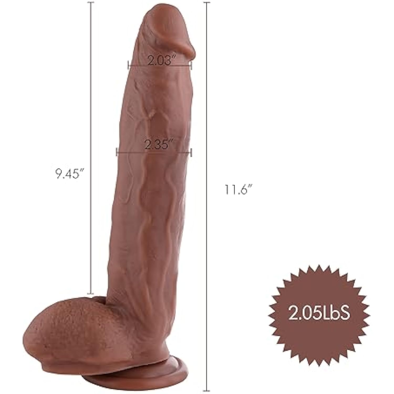 11.6” Dual-Density Silicone Dildo, 9.45” Insertable Length Ultra-Soft Cock With Kliclok System For Advanced User, Coffee