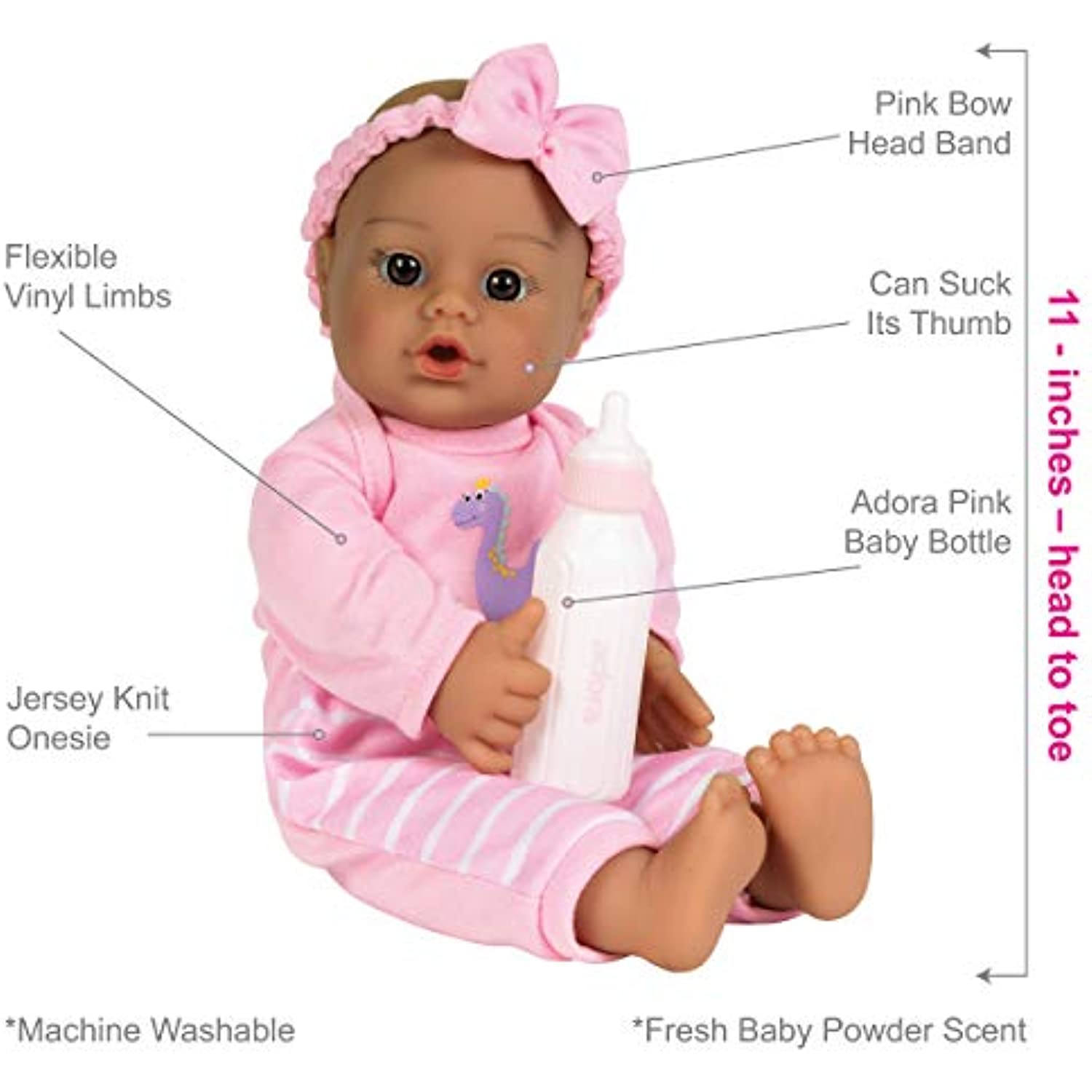 - My First Baby Doll: These Sweet babies are the perfect first baby dolls for kids and toddlers age 1 and up; dark skin tone, bright brown eyes and black painted hair