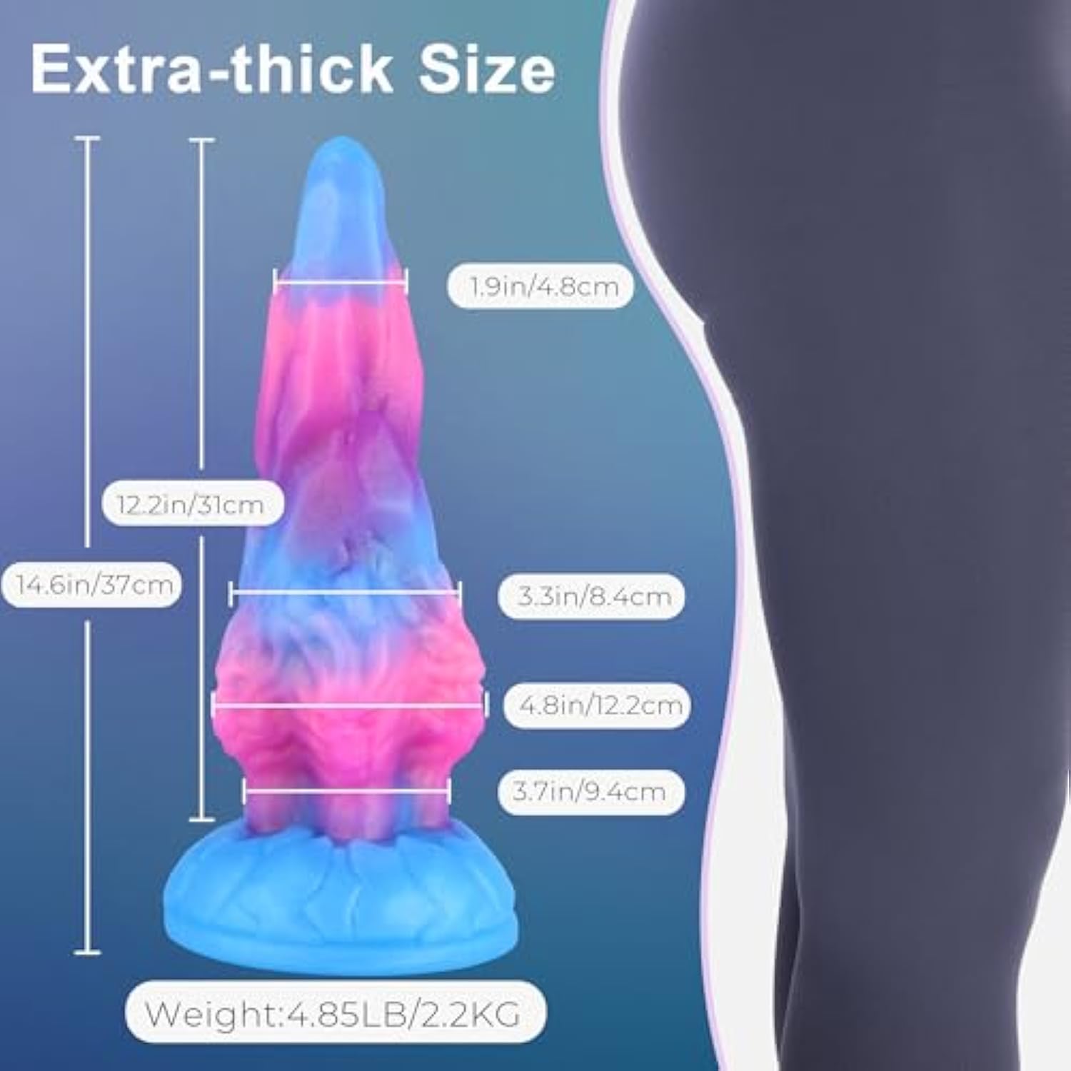 | Extra-Large Size: With A 14.6 Full Length, 12.2-Inch Insertable Length And A Maximum Shaft Diameter Of 3.7 Inches, This Massive Silicone Dildo Is Designed To Fulfill Your Wildest Fantasies | | Glow-In-The-Dark Silicone Dildo: Crafted From Liquid Silicone, Featuring A Firm Core And A Soft Outer Layer, This Large Huge Dildo Offers Both Flexibility And Safety For An Exceptional Experience | | Handcrafted Detail: Every Ridge, Texture, And Unique Curve Of This Fantasy Dildo Is Individually Crafted To Enhance Your Adventurous Play. Feel The Difference With This Thick And Sizable Dildo | | Versatile Training: The Thick Suction Base Ensures Hands-Free Play, Allowing You To Ride It On Any Smooth Surface. Best Used With Water-Based Lubricants For Optimal Enjoyment | | Wild Fantasy: The Long, Oversized Shaft Curves With A Smooth, Flexible Tapered Tip For Easy Entry And Training, Making It Perfect For Experienced Users Seeking A Thrilling Challenge | |