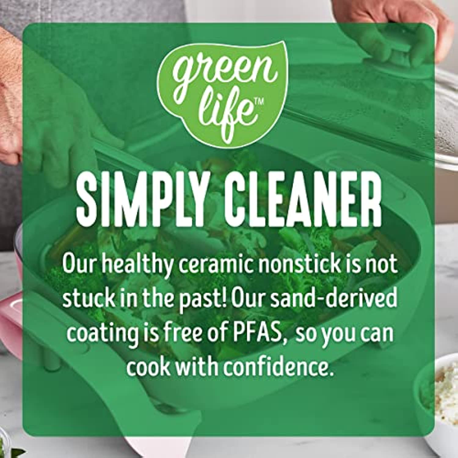 - Our easy-to-clean ceramic nonstick coating is derived from sand and free of PFAS, PFOA, lead, and cadmium for effortless release and quick cleanup
