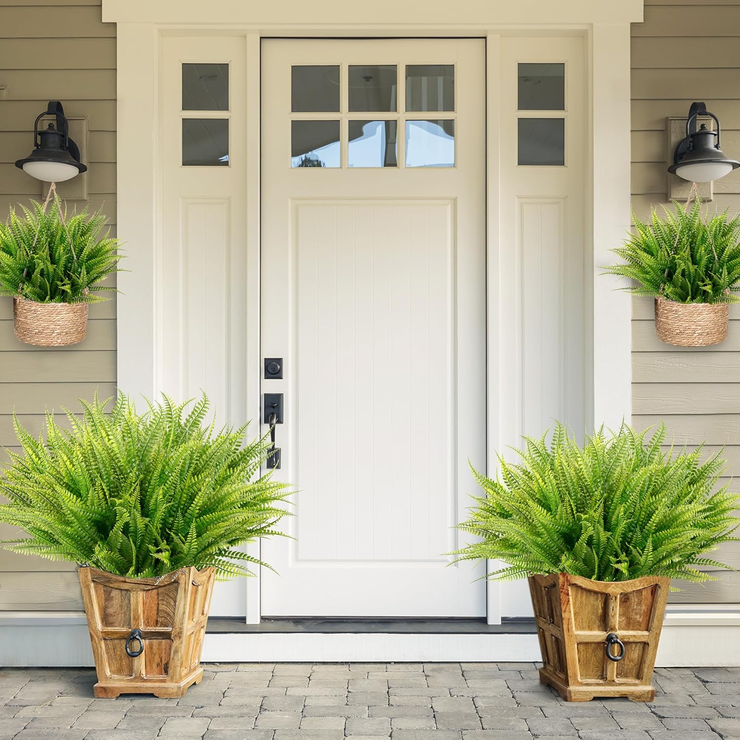 - [REALISTIC APEARRANCE]: These outdoor greenery has vibrant color and lifelike features. They have clear patterns and lines with texture, range from dark green to light green, providing your home a enthusiastic atmosphere and bring vitality and natural sense to your home.