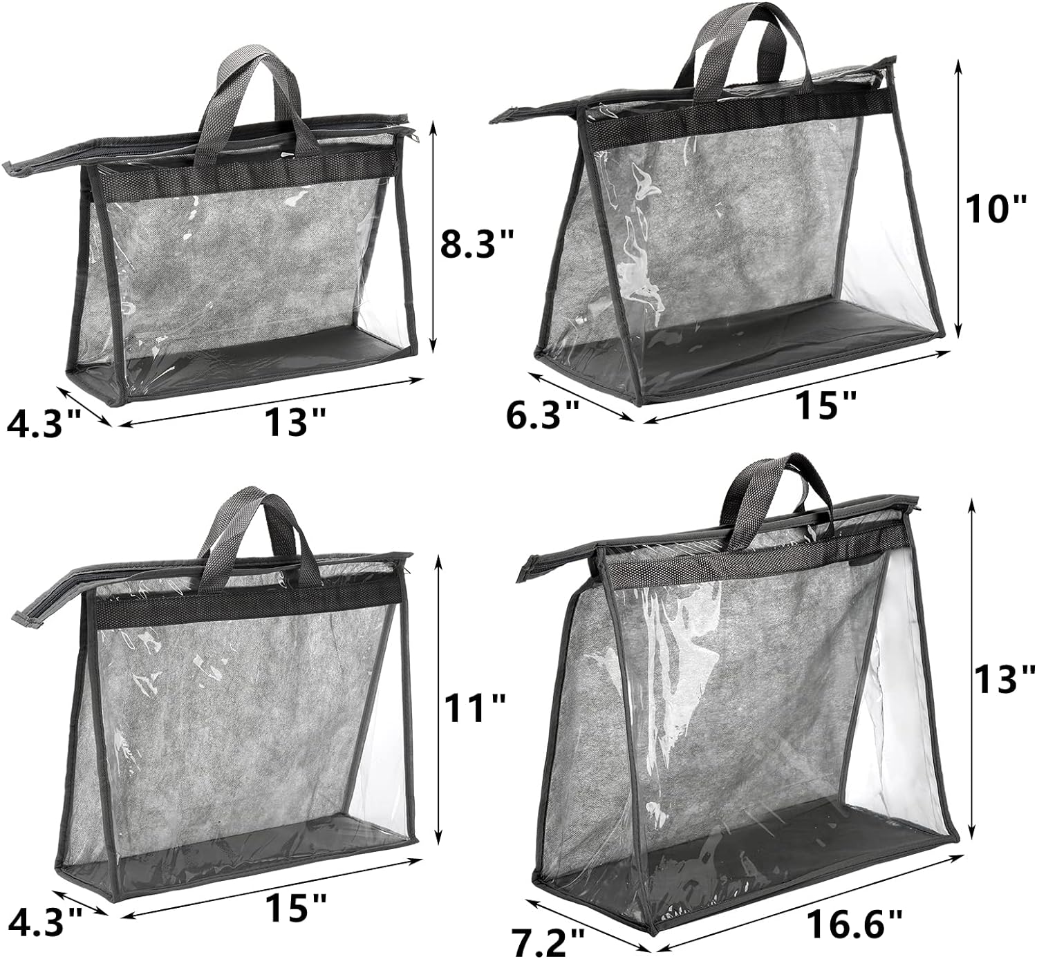 - The portable handles on the purse protector storage bag make it easy to hang in the closet. Smooth zippers protect your handbag from dust and keep your handbag and purse clean and tidy all the time.