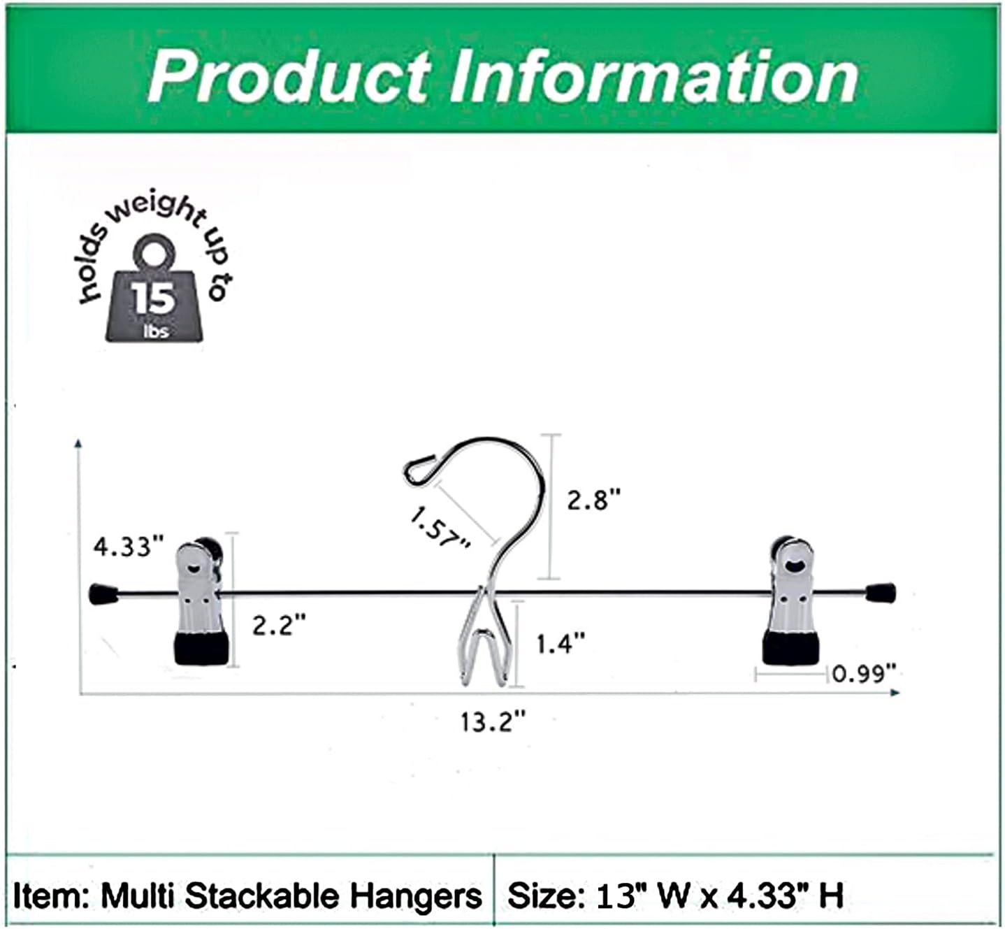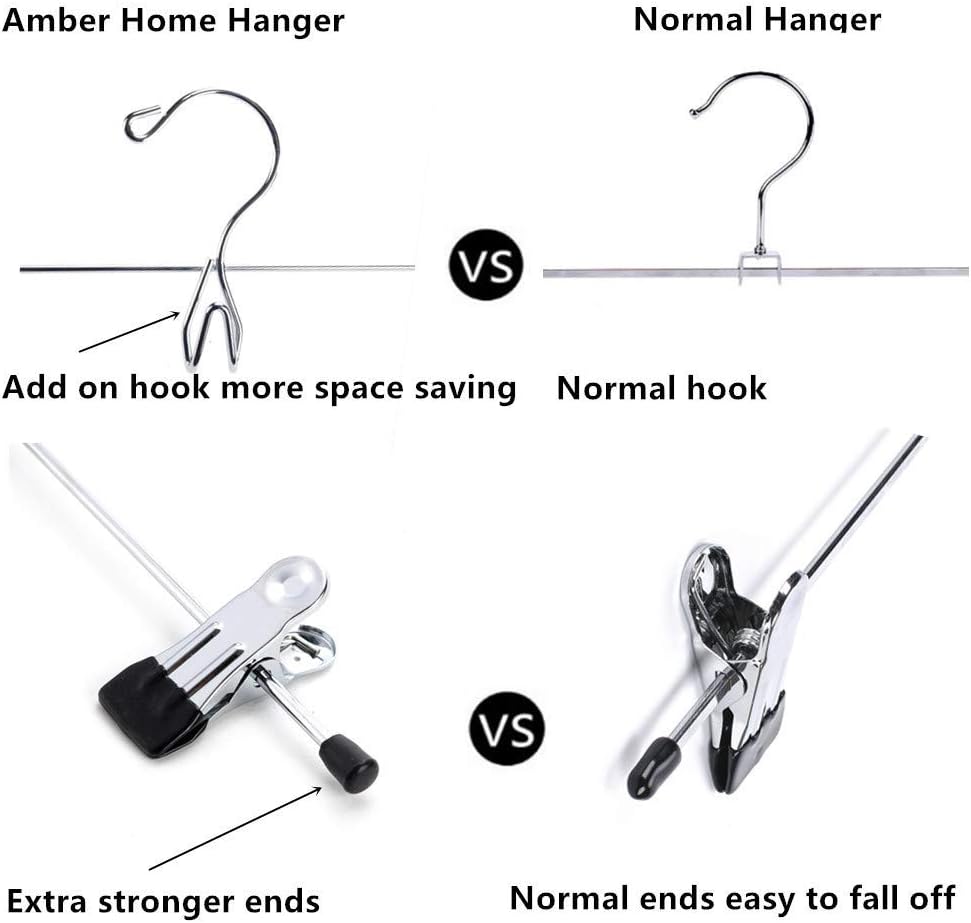 - ăStrong ConstructionăMade of strong metal and chrome plated process with superior bearing ability, tougher and more durable to hold clothing without bending. Sturdy stainless steel strong construction with space-saving add on hook. Hanger size: 13.2"L x 4.33"H, Hook open: 1.57". Set of 12 pack.