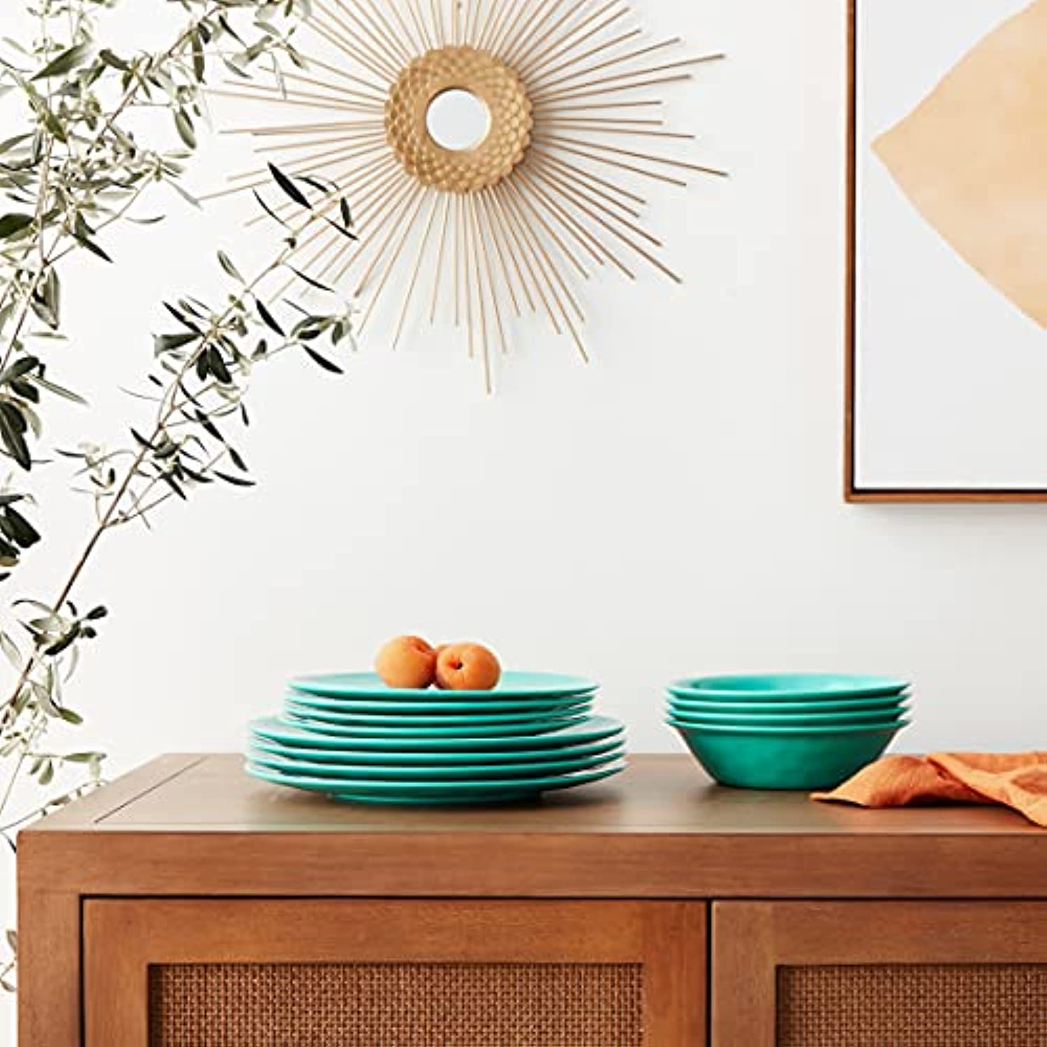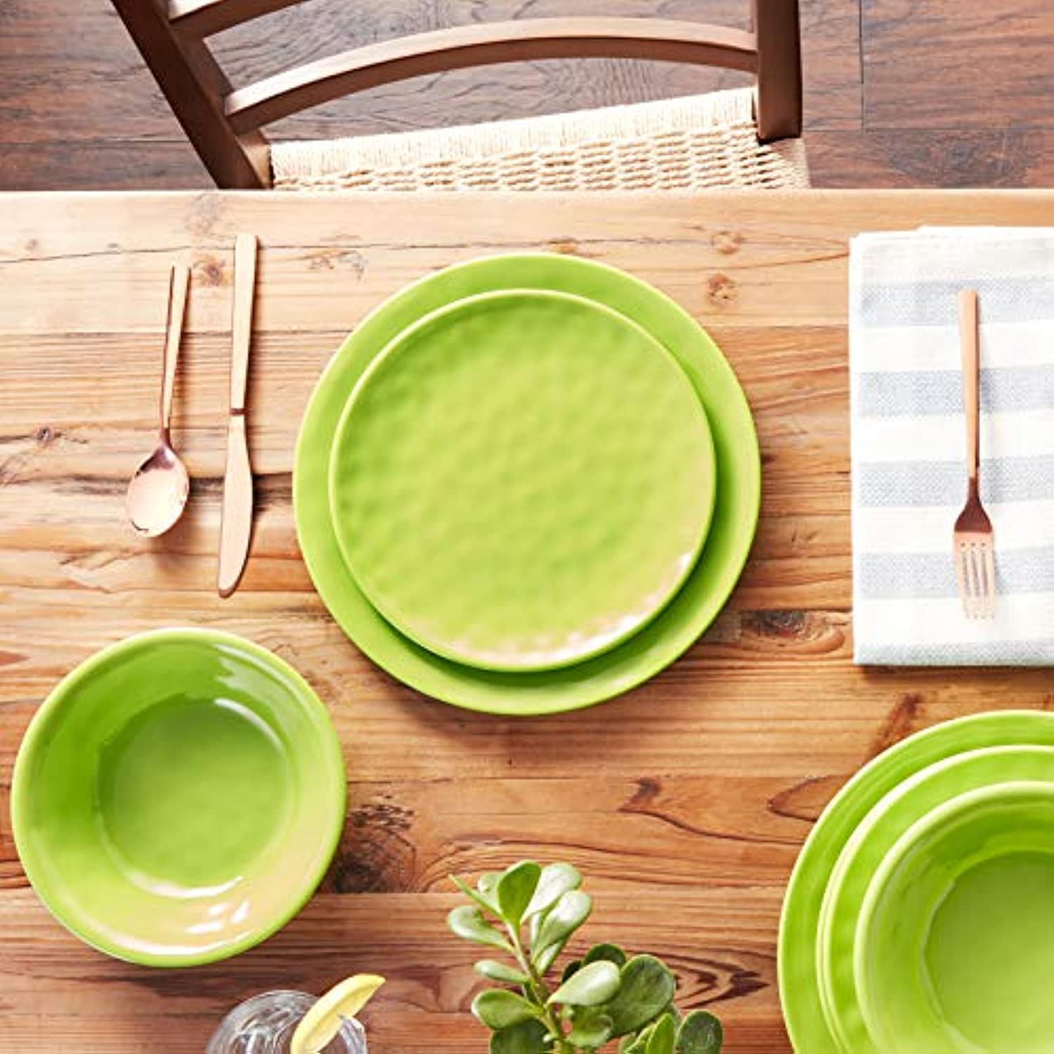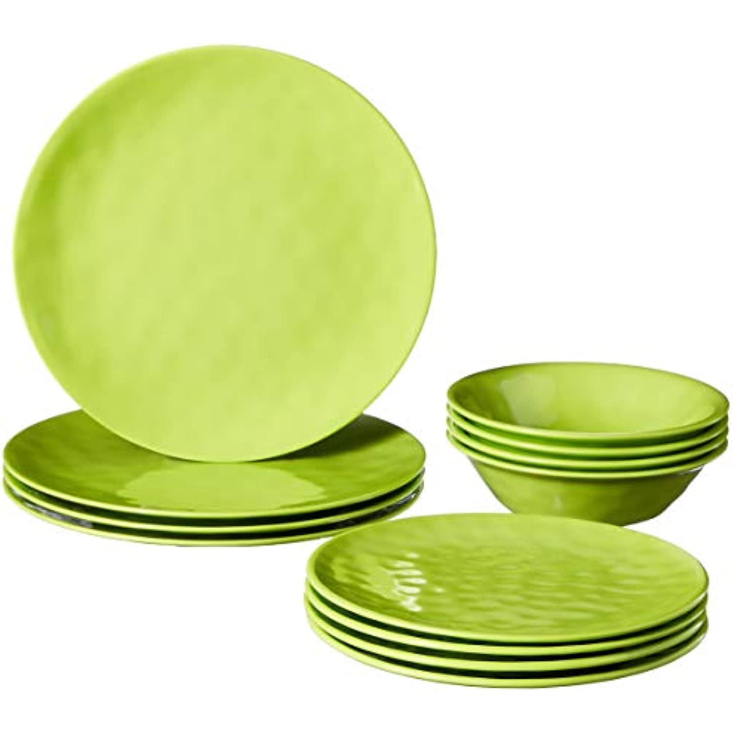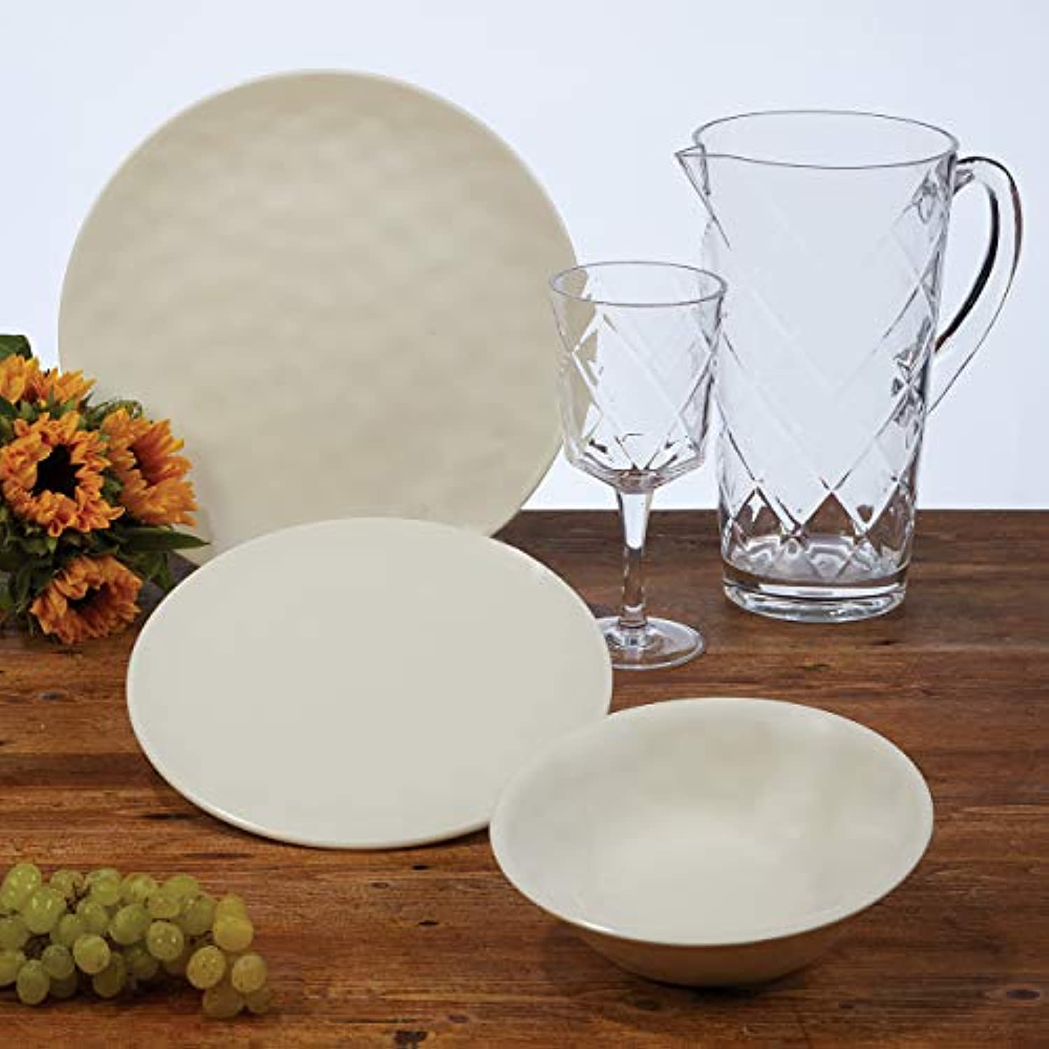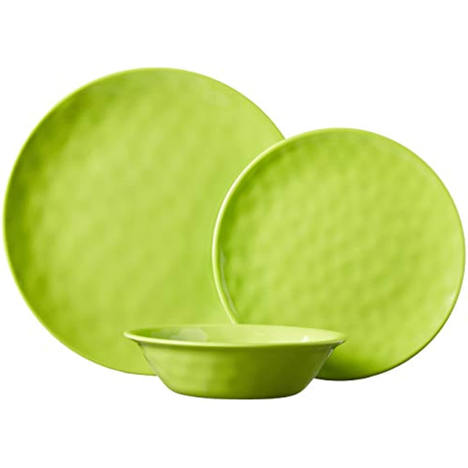 - Includes: 4 each: 10.5" dinner plates, 8.5" Salad/dessert plates, 7.5"X2" all purpose bowls