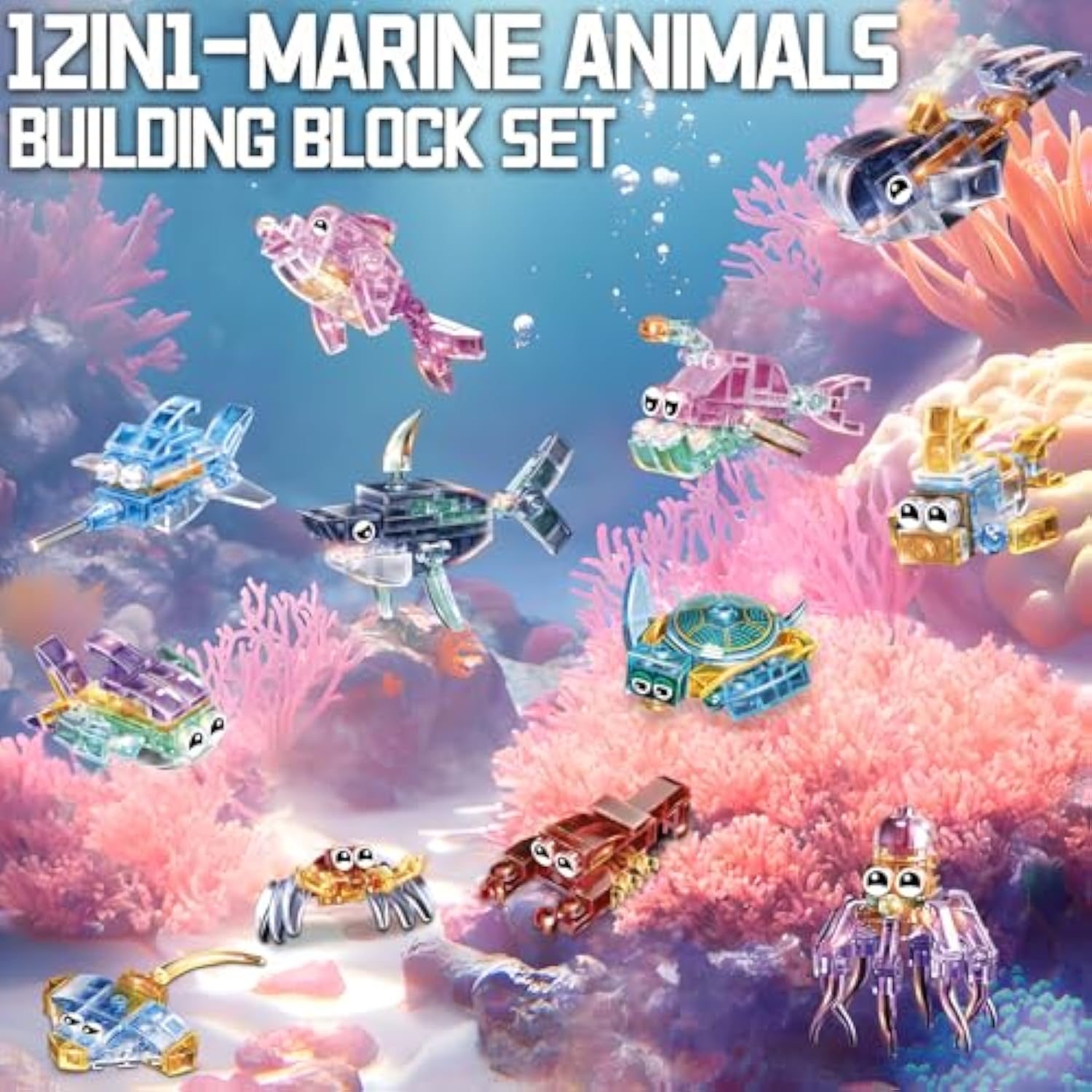 12 Piece Set Of Marine Animal Building Blocks, Suitable For Goodie Bags, Stocking Stuffer, Classroom Prizes, Birthday Gifts, Boys' And Girls' Toys 12 In One Building Block Set