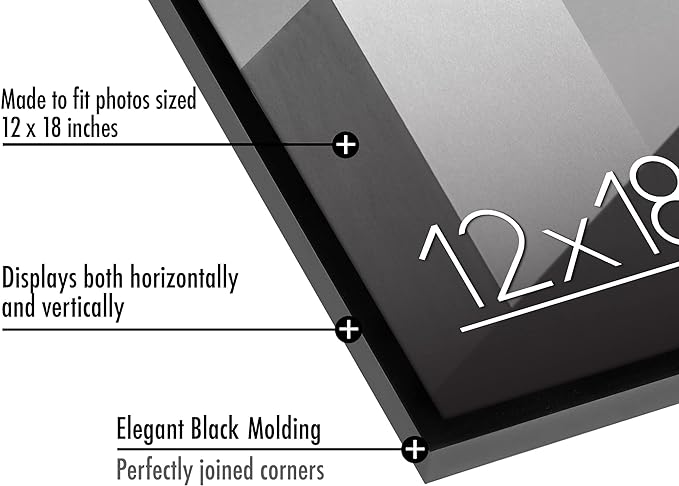 - Ideal Size and Durable Material: This 12x18 frame features a slim molding, crafted from durable and high quality PVC material in black, designed to beautifully display your cherished memories and favorite photos.