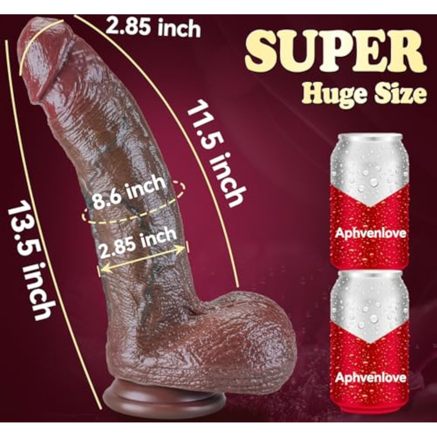 13.5 Inch Huge Big Black Dildo Sex Toy, 2.9" Wide Extra Giant Thick Bbc Dildo With Suction Cup, Xxl Large Soft Dual Density Curved Silicone Massive Dildos For Advanced Women Men Gay Sex Toys