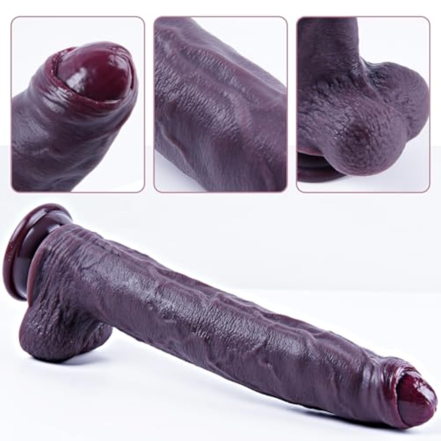 13.6" Xxl Giant Uncut Dildo, Huge Foreskin Realistic Dildo, Black Silicone Anal Vagina Penis With Big Suction Cup, Thick Fat G-Spot Penis, Extra Long Large Adult Wide Sex Toys Advanced Player Toy