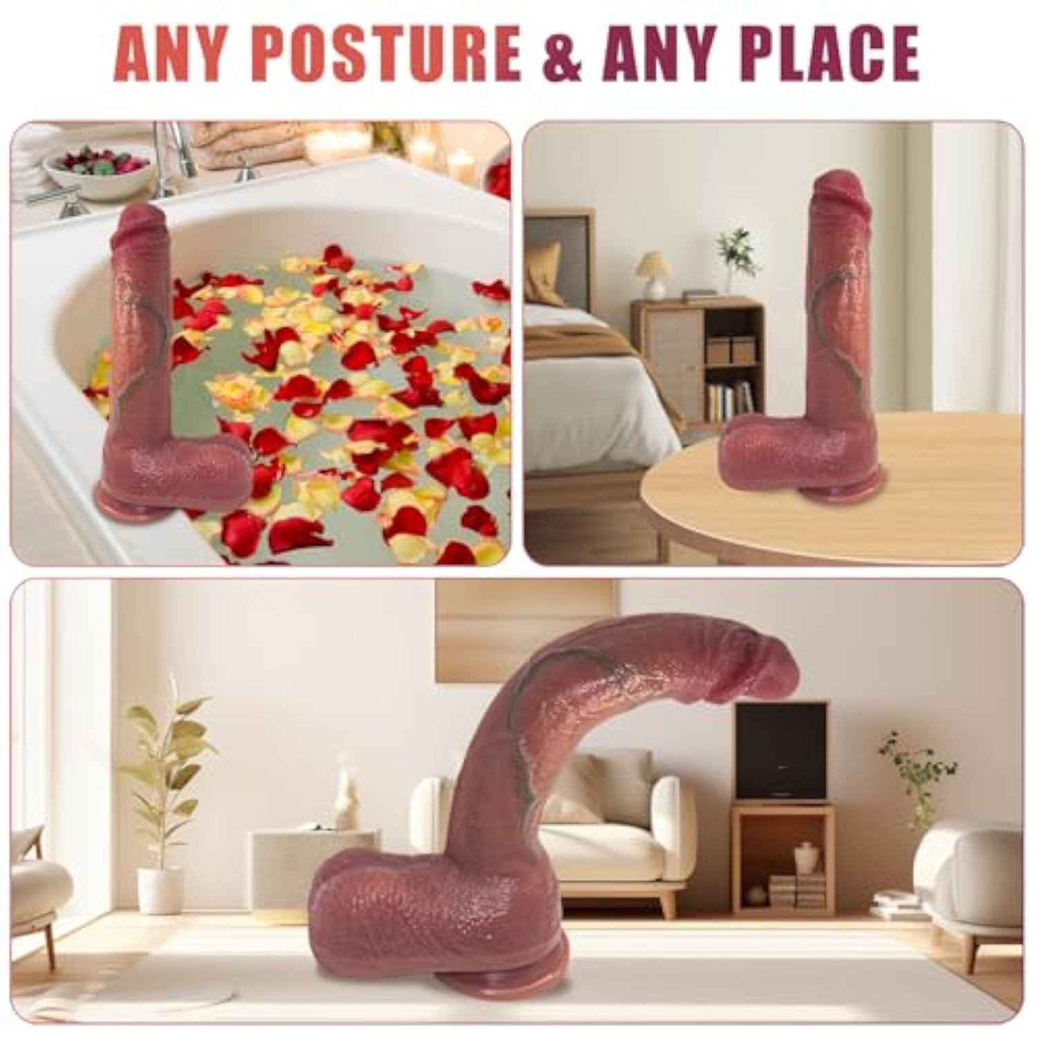 | Lifelike Realistic Dildo: This Silicone Dildo Is Designed By Multiple Senior Designers According To The Real Size Ratio Of The Human Body. The Realistic Texture And Soft Liquid Silicone Feel Have Been Improved And Debugged Many Times, Just To Provide You Realistic Experiences | | Perfect Size For Advanced Professional: Total Length Of 13 Inches, Insertable Length Of 10 Inches, Circumference Of 8.5 Inches, Maximum Diameter Of 2.7 Inches. When He Touches Your Depths, You Will Feel The Ultimate Pleasure Everywhere And You Can'T Help But Scream Out. Suitable For Both Advanced Players And Professional Players To Play | | Strong Suction Cup: The Dildo Has Super Strong Suction And Can Naturally Adhere To Smooth Surfaces, Shower Walls, Bathtubs, Seats, Benches Suitable For Single-Player Or Partner Games, Satisfying Multiple Scenes And Multiple Postures | | 100% Healthy Silicone Easily Clean: Made Of 100% Soft Medical Healthy Liquid Silicone Material That Is Harmless To The Human Body. It Will Be The Softest, Warmest And Most Comfortable Realistic Dildo You’Ve Ever Used. Very Easy To Clean With Water, Please Store In A Dry And Ventilated Place After Cleaning | | Discreet Package: We Provide Discreet Packaging And Unmarked Delivery, Keep Your Privacy In Strictest Confidence. So You Don'T Have To Worry About Your Privacy Being Seen By Others | |
