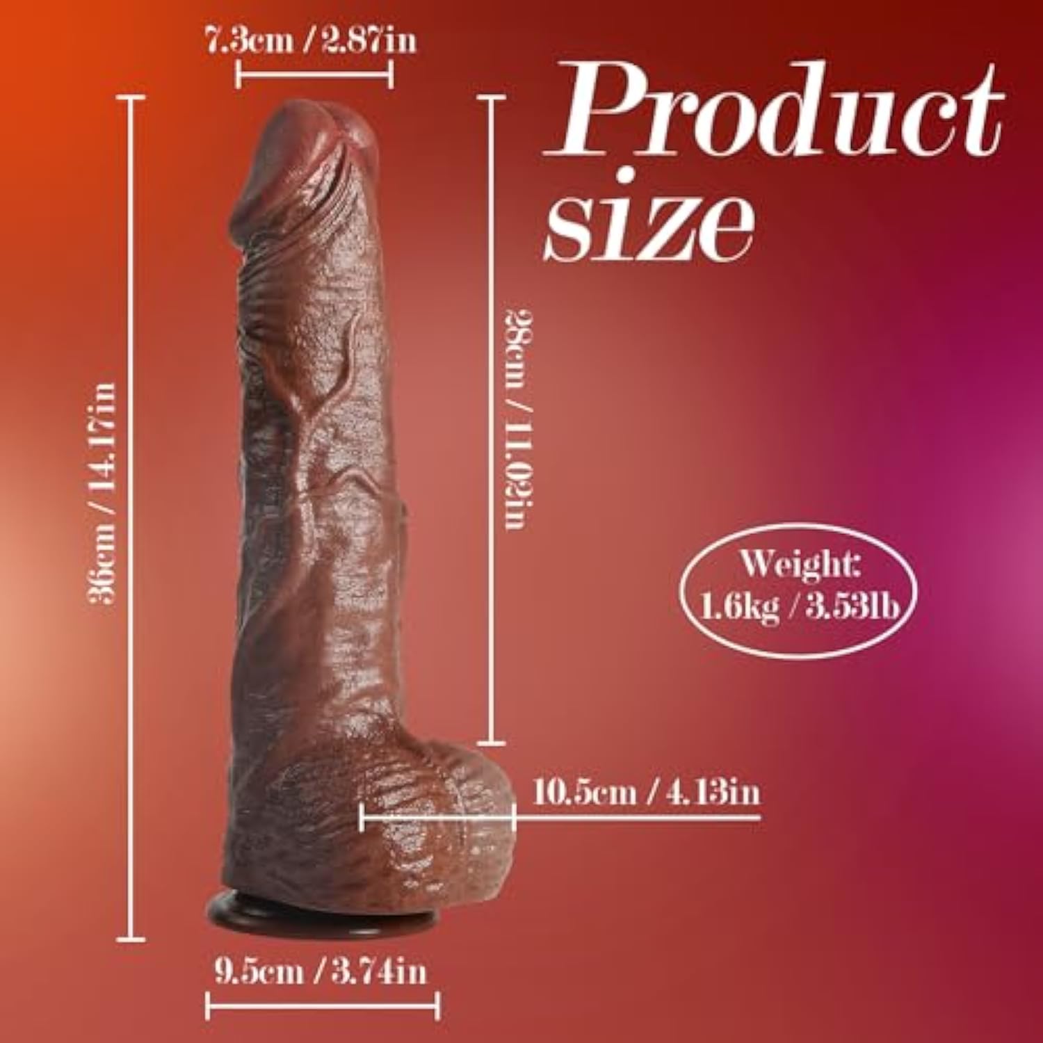 14.1 Inch Massive Dildo Realistic,2.8" Diameter Thick Dildo With Strong Suction Cup,Feels Like Skin Large Bbc Sex Toy For Women Men