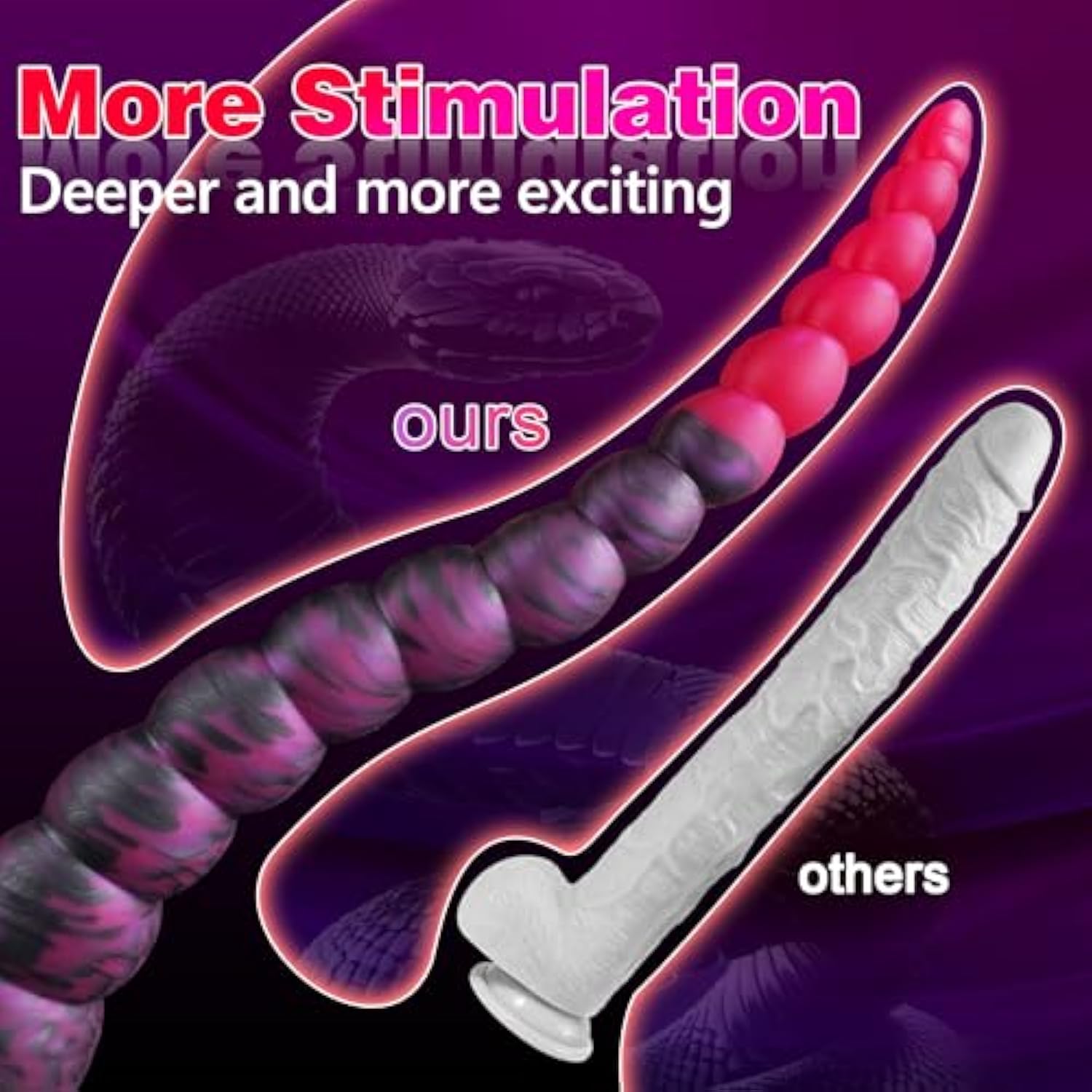 - 14 Inch Dildo: This Is Not An Ordinary Fantasy Dildo. The Long Anal Dildo Is Modeled After A Rattlesnake Tail, Perfectly Replicating The Multi-Knot Shape. The Diameter Of The Alien Dildo Gradually Increases, And The Unique Ridges Can Bring You More Stim