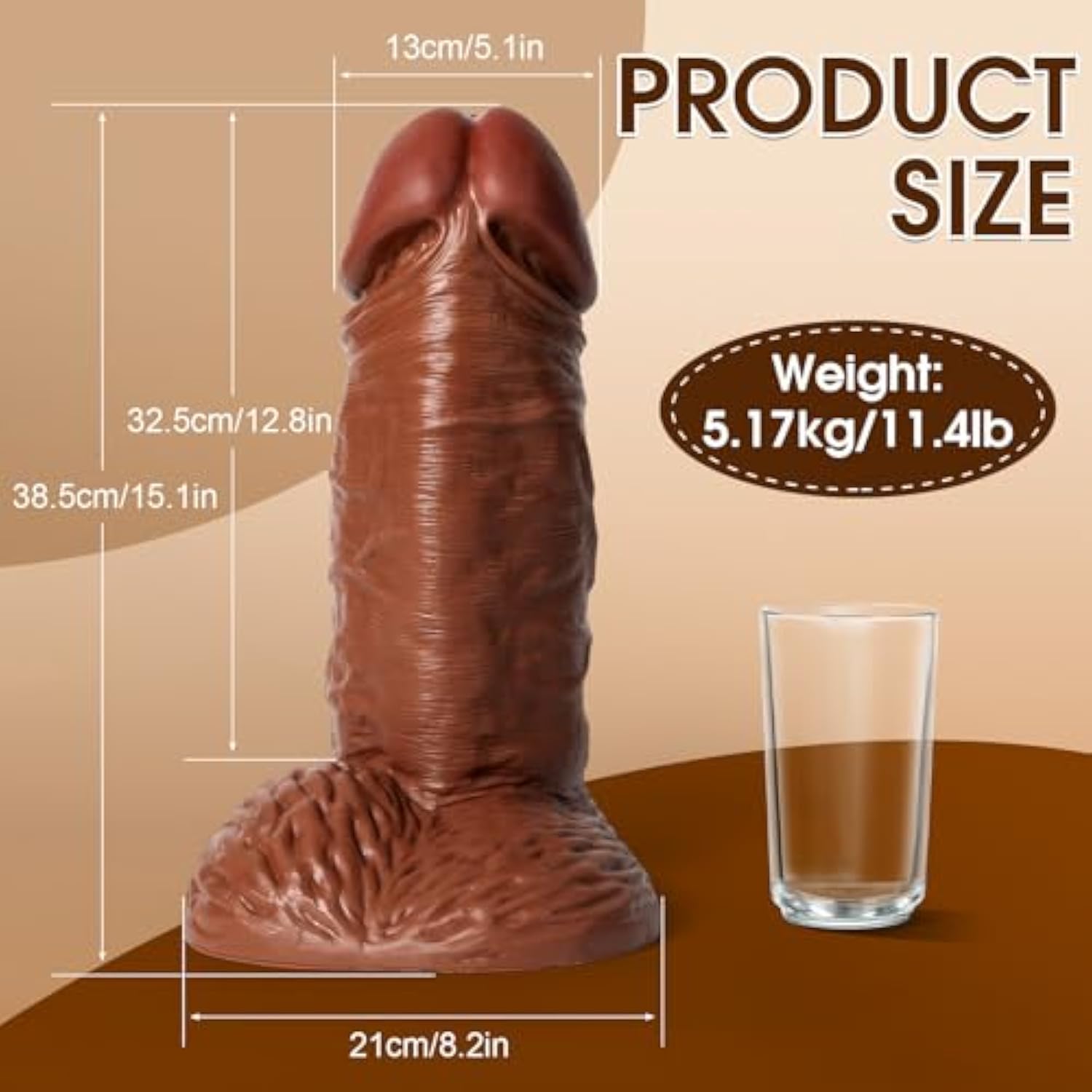 15.1 Inch Huge Thick Dildo Realistic,5.1 Inch Diameter Extra Wide Fat Massive Dildo With Suction Cup,Super Large Brown Adult Sex Toys For Women Men Couples Games