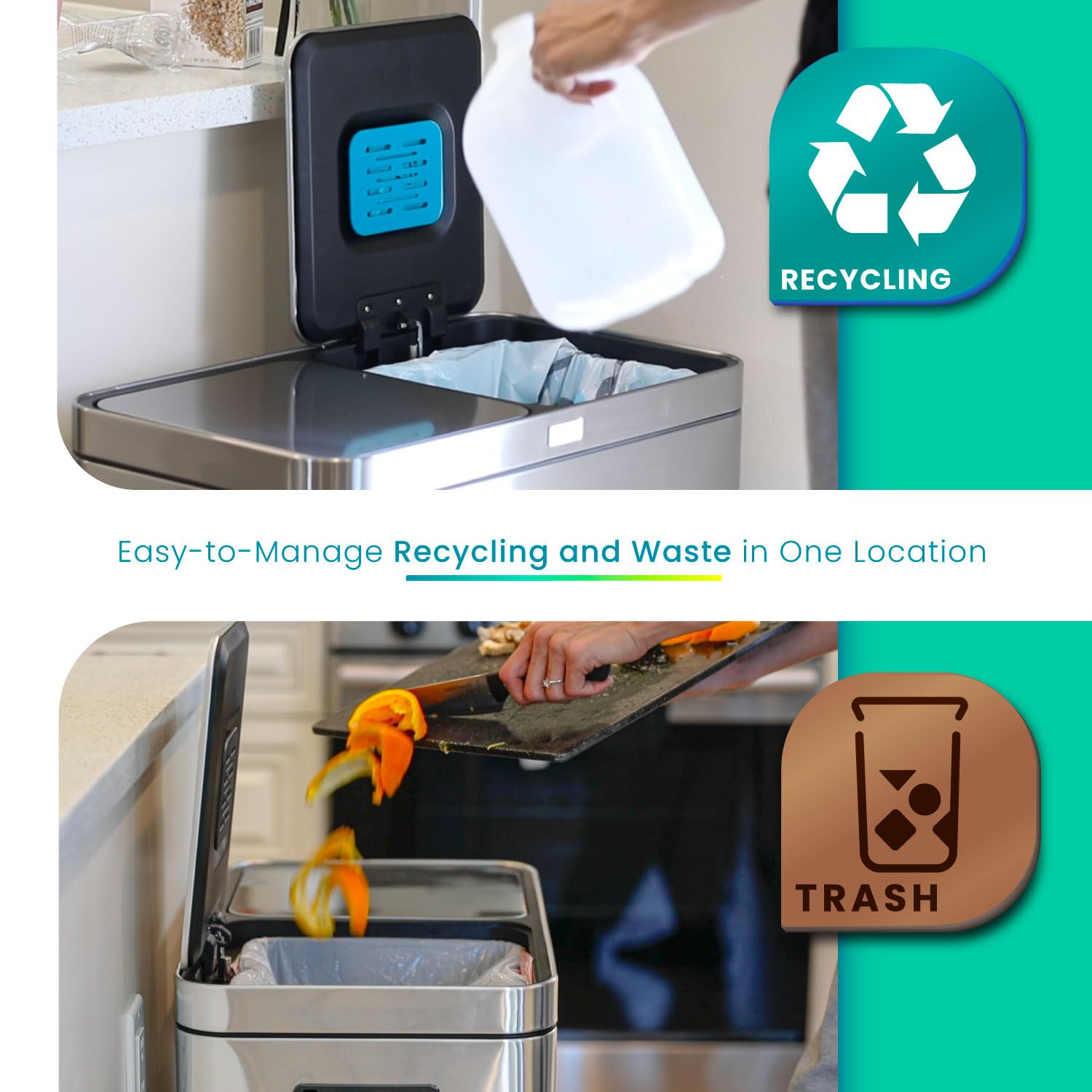 15.8 Gallon Kitchen Trash Can, Dual Removable Liners for Recycling and Trash, CleanAura Odor Control, Wide Stainless Steel Shape (7.9 + 7.9 for 15.8 Gallon Total)