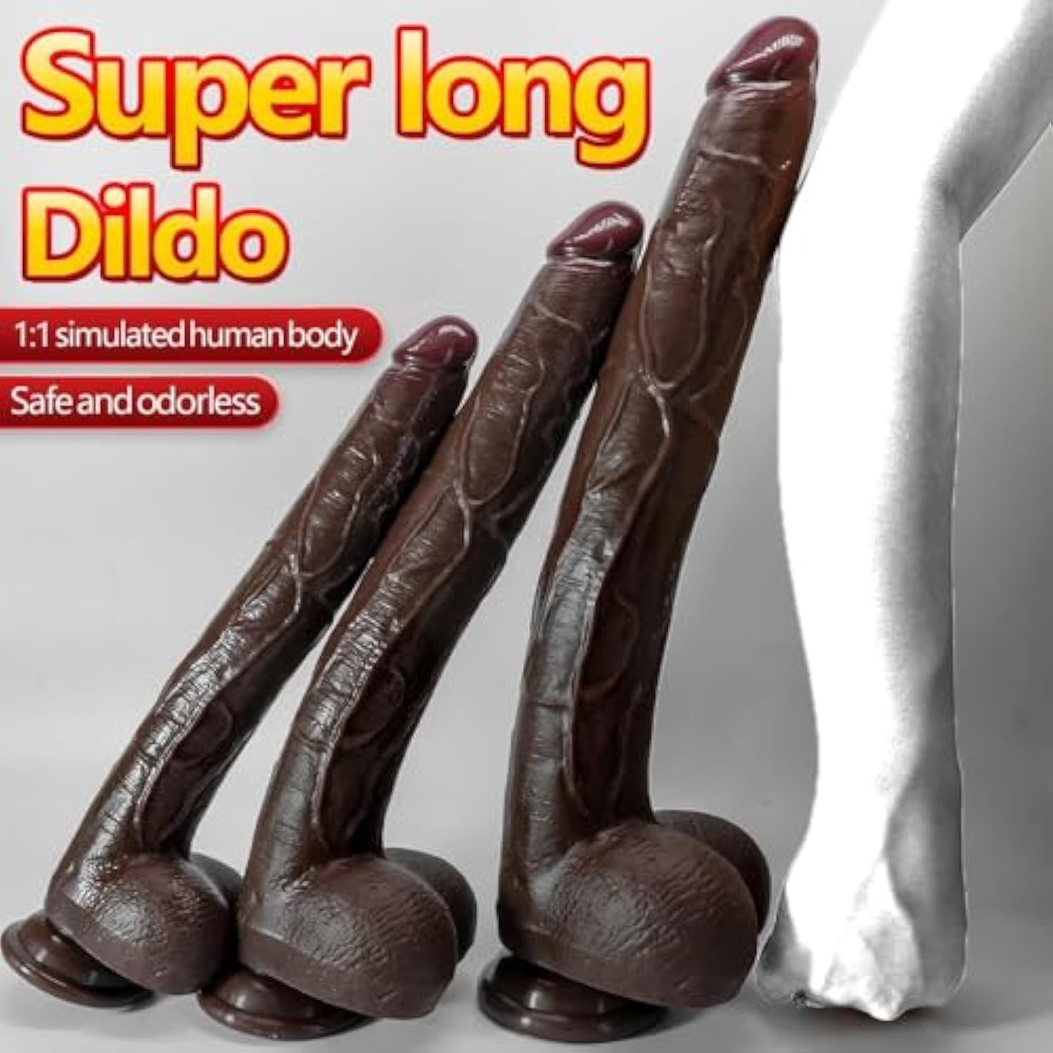 16.5" Brown Silicone Realistic Dildos, Extra Long Huge Dildo With Suction Cups For Prostate Stimulation Anal Plug, Soft Lifelike Fake Penis Big G-Spot Dildo Adult Sex Toys For Women Men (L)
