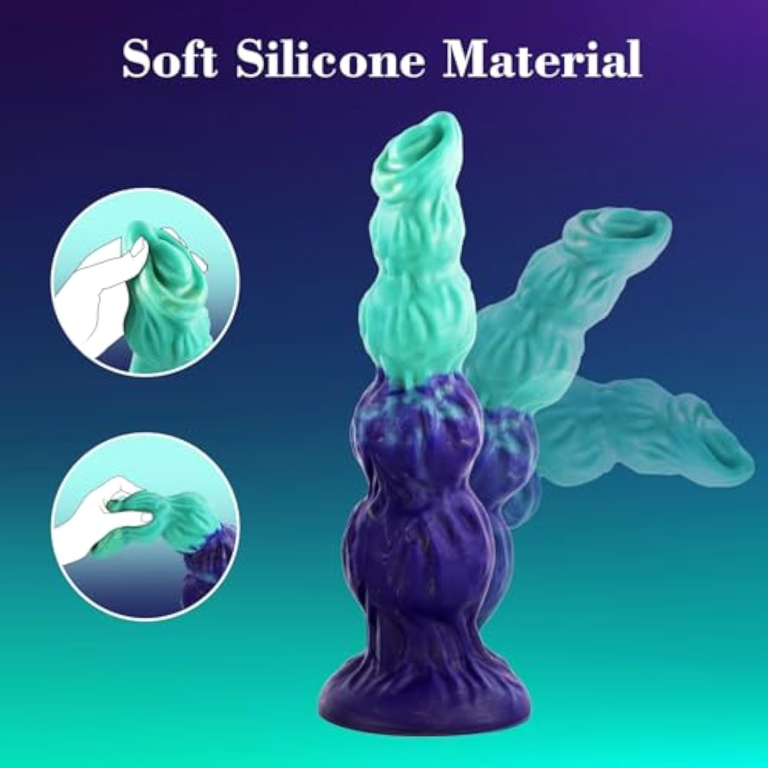 =- Huge And Thick Knot Dildo: This Knotted Dildo Has Four Different Sizes Of Knots, Which Will Satisfy And Overpower You More Compared To Other Knot Dildo!Cyan Mixed Purple Color With Gold Glitter Makes The Whole Silicone Dildo Look Very Fantasy And Uniqu