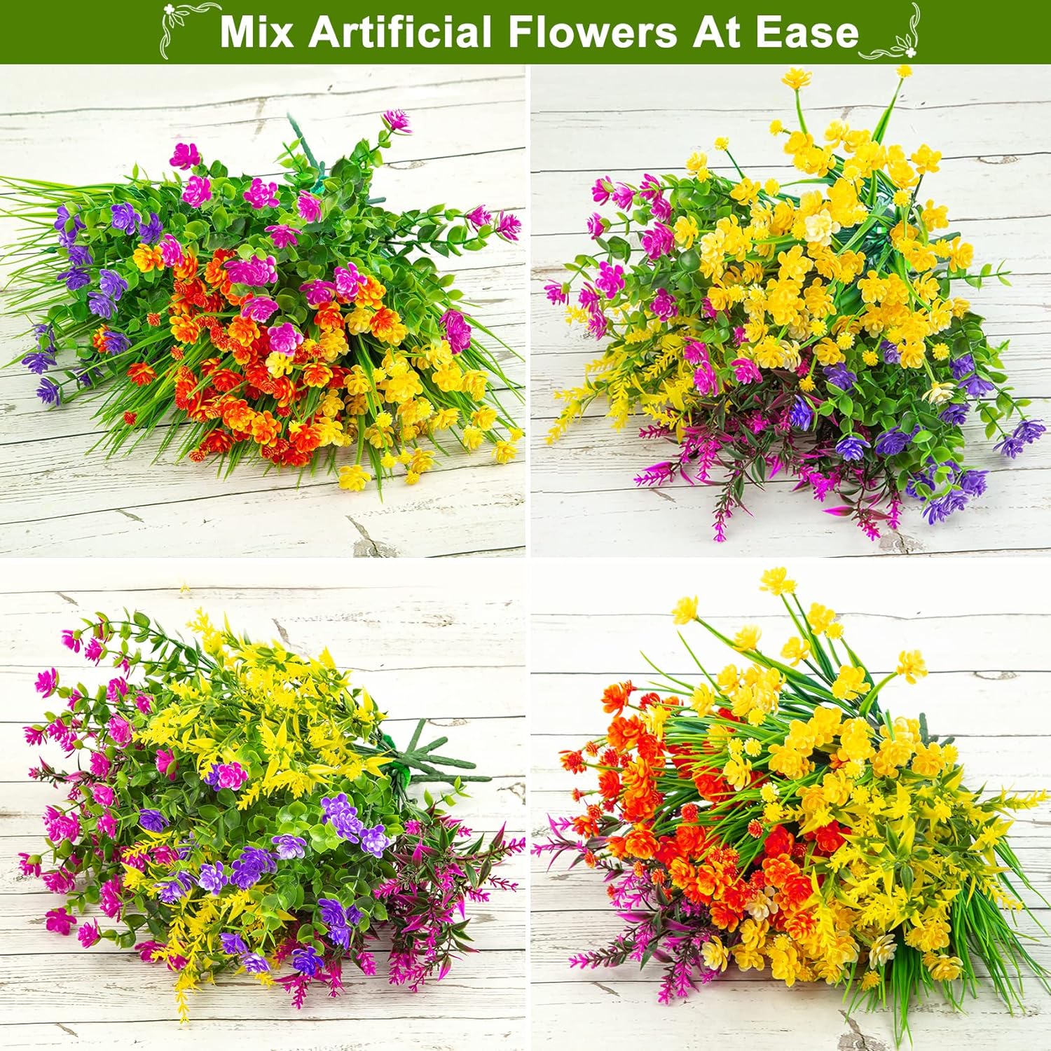- Artificial Flowers for Outdoors: Designed for outdoors and indoors decoration. These lifelike fake flowers add a charming charm to your front porch, walkway, garden, kitchen, windowsill, room, table, terrace and garden fence. Artificial flowers for decoration are very suitable for daily home, garden, birthdays, holidays, weddings, memorial places, DIY projects, etc.