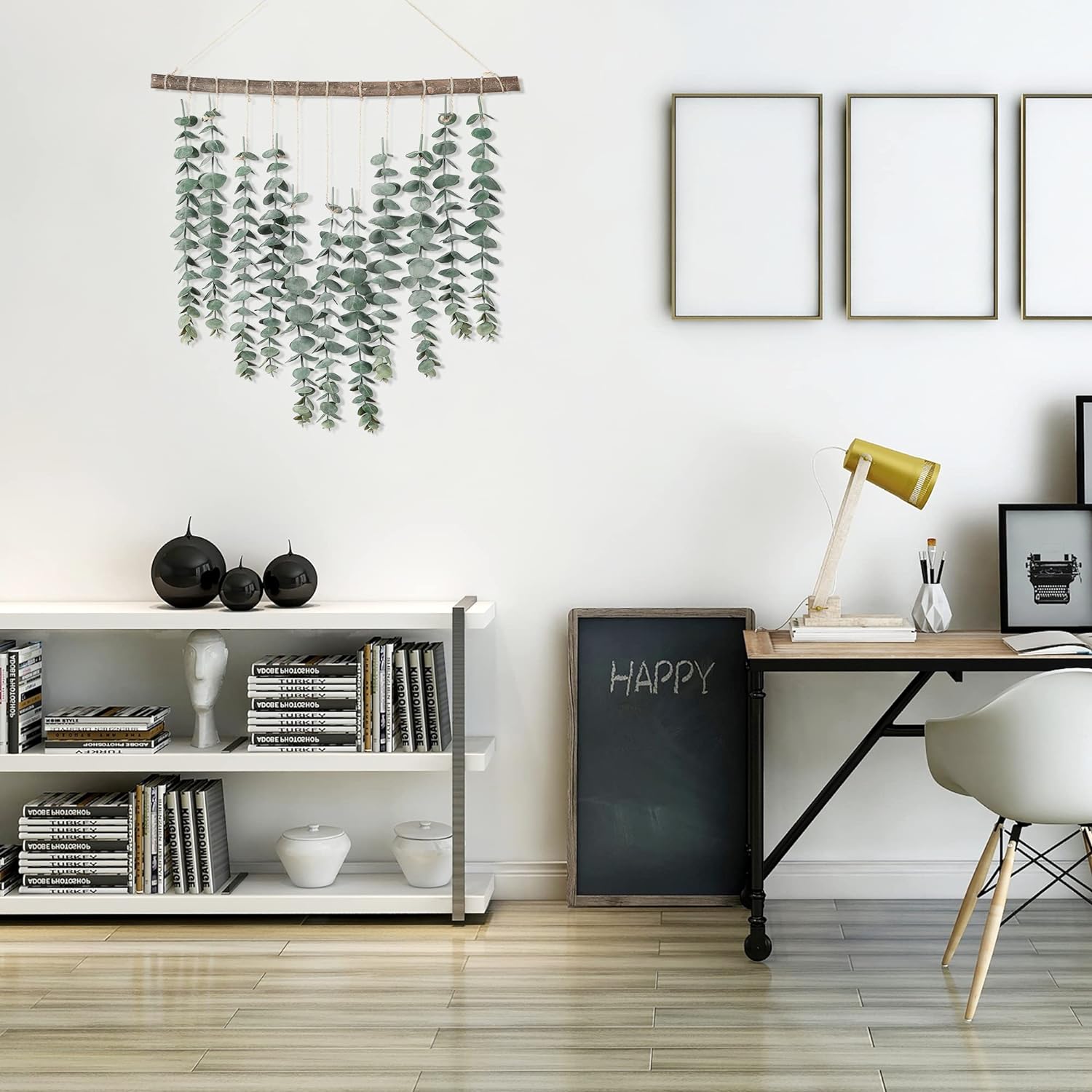 17.7‘’Eucalyptus Wall Hanging Artificial Eucalyptus Plant Fake Greenery Vine Boho Wall Decor for Apartment Bathroom Bedroom Kitchen Farmhouse Home Living Room Office Decorations