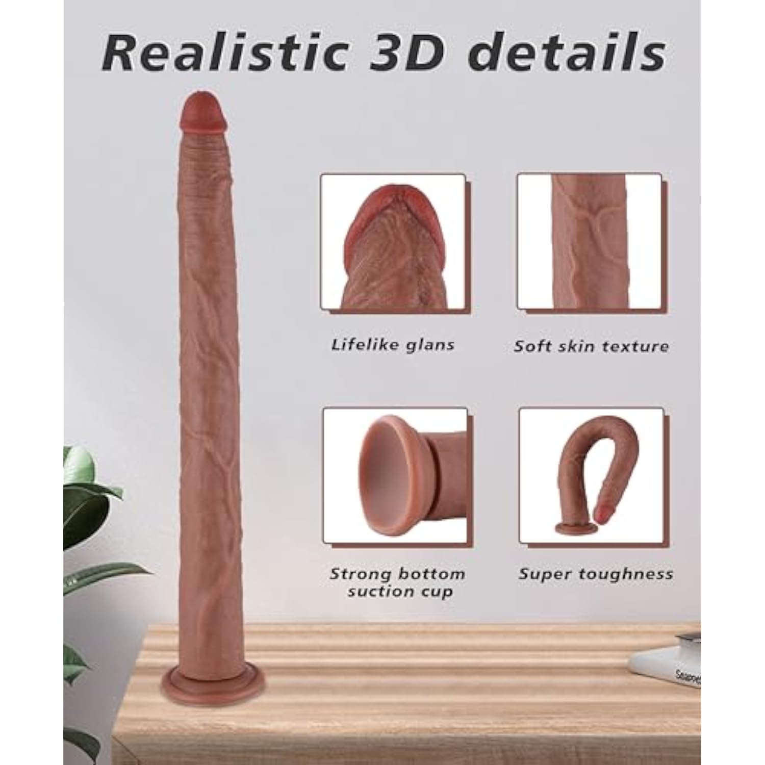 19.8 Inch Long Realistic Dildo, Huge Big Thick Silicone Anal Plug, Strap On Dildo With Suction Cup For Women Men Couples Massage, Adult Sex Toys, Brown