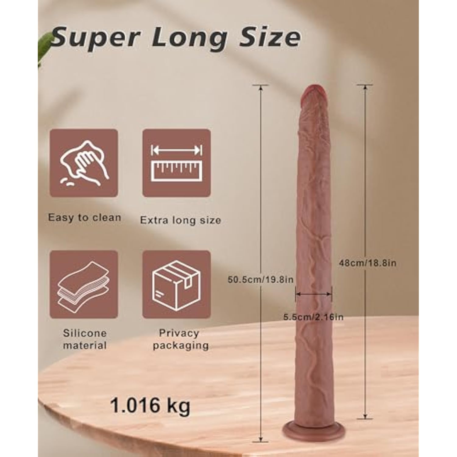 - Real Long Size: The Total Length Of This Realistic Vibrator Dildo Is 19.8 In, The Available Length Is 18.8 In, The Width Diameter Is 5.5 In, And The Suction Cup Base Diameter Is 3.2 In. Our 19.8 In Extra Long Anal Dildo Is Perfect For Stimulating And Ma