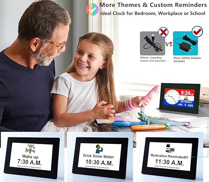 - ๐ ๐๐น๐๐ถ๐ฝ๐น๐ฒ ๐๐น๐ฎ๐ฟ๐บ๐ & ๐ฎ๐ฌ+ ๐๐๐๐๐ผ๐บ ๐ฅ๐ฒ๐บ๐ถ๐ป๐ฑ๐ฒ๐ฟ๐: never miss a special event or task again! This digital clock with day and date comes with multiple reminders for medications and drinking water; More uniquely, You can also add, edit or upload 20+ reminders for a daily, weekly or even a date-specific schedule