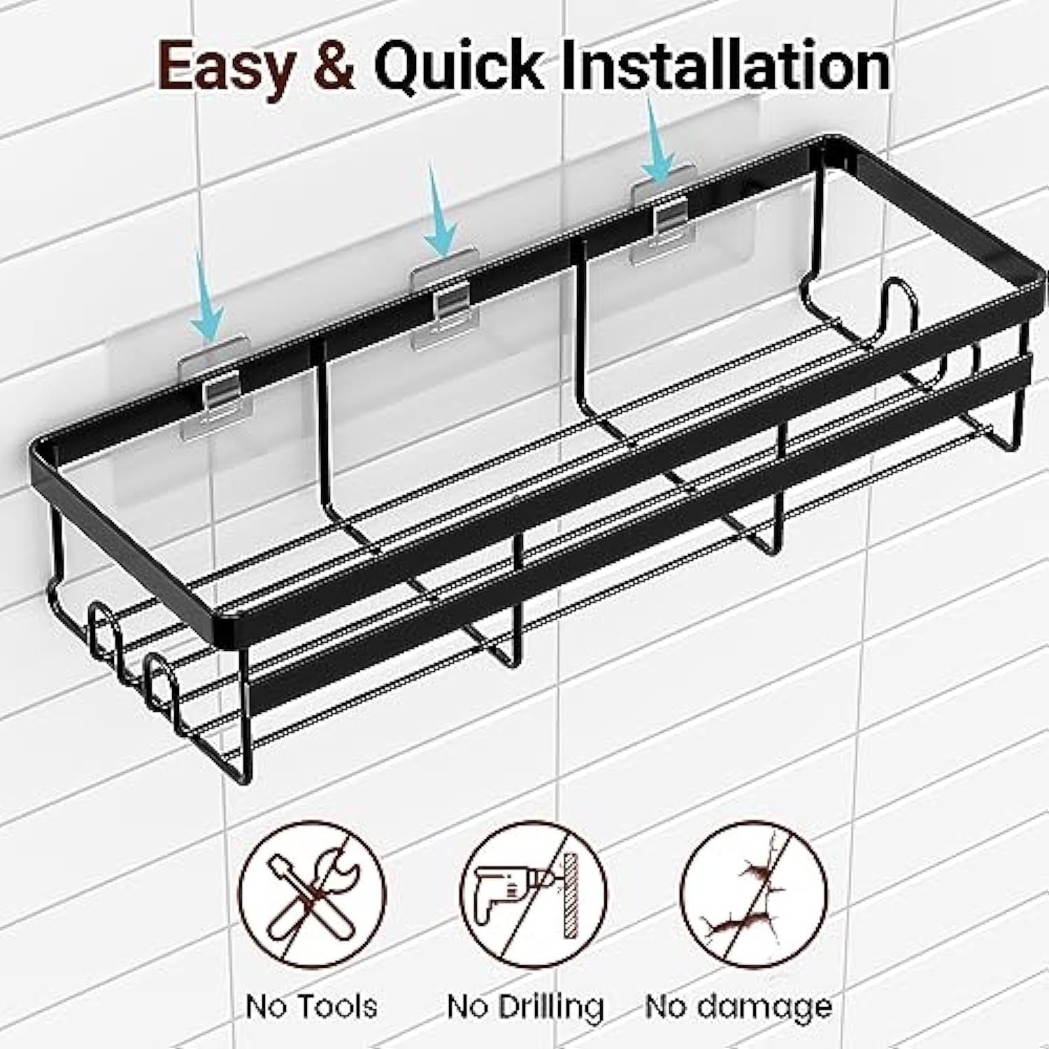 - Strong Frame & Adhesive: Upgraded the metal frame with an additional fence on the front to make the structure stronger, increasing stability and load-bearing capacity over 30 lb. The transparent adhesive provides strong stability while maintaining the beauty of the bathroom. Conveniently use without drilling or installation.