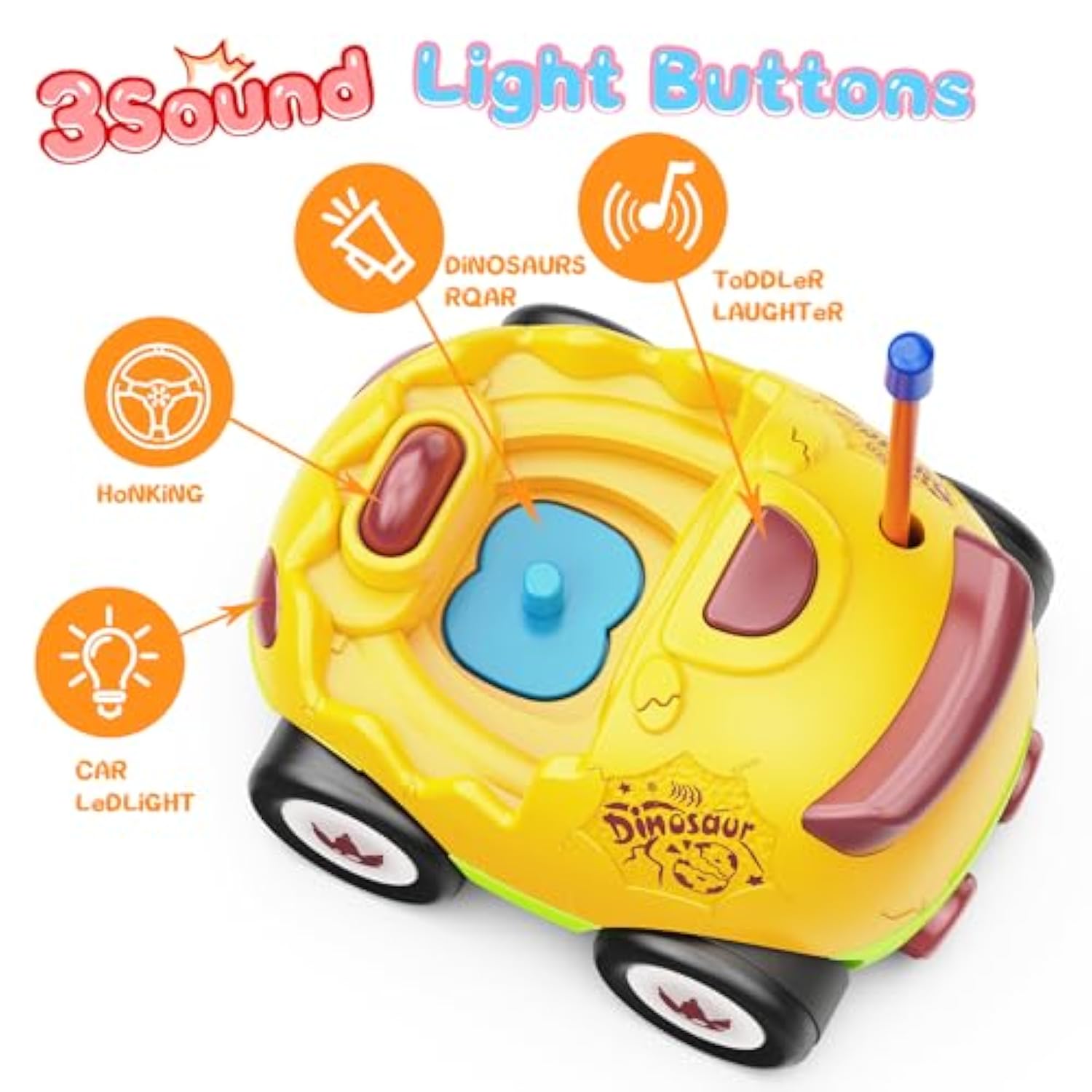 | ?A Set With 2 Remote Control Cars? This Is A Set Of Two Egg-Shaped Remote Control Cars For Toddlers With Music, Sound, And Light Features, Two Interchangeable Dinosaur Figures, And Two Remote Controls That Move The Cars Forward And Backward Left. | | ?Move To Anywhere? By Controlling With Big Button Remote Controls, The Cars Are Easy To Move Anywhere. Different Remote Controls Correspond To Different Cars Without Interfering With Each Other. Both Cars Can Be Played With At Once. | | ?Fun Rc Car Toy? Cars Have Realistic Engine Sounds, Music, Honking Sounds, And Flashing Headlights. And The Sounds, Music, And Lights Can Be Turned Off. Grab A Brother, Sister, Cousin, Or Friend, And Start Racing! | | ?Battery Operated?3 Aa Batteries For The Cars And 2 Aa Batteries For The Remote Controls Are Required. Batteries Are Not Included. | | ?Great Gift With Giftable Package?This Dinosaur Remote Control Car Toy Can Be Played On Any Hard Flat Surface. It Is An Ideal Birhtday/Christmas Gift For Family Fun. Best Remote Control Car Toys For 2 3 4 5 Year Old Boys And Girls! | |
