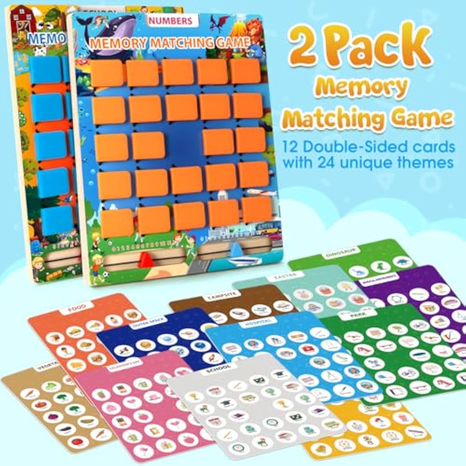 2 Pack Matching Memory Game For Kids Age 3 4 5 6 7 8 Years Old, Travel Toy For Toddlers Boys Girls, Road Trip Travel Essentials For Kids, Airplane/Car/Camping Activity, Ideal Christmas, Birthday Gifts