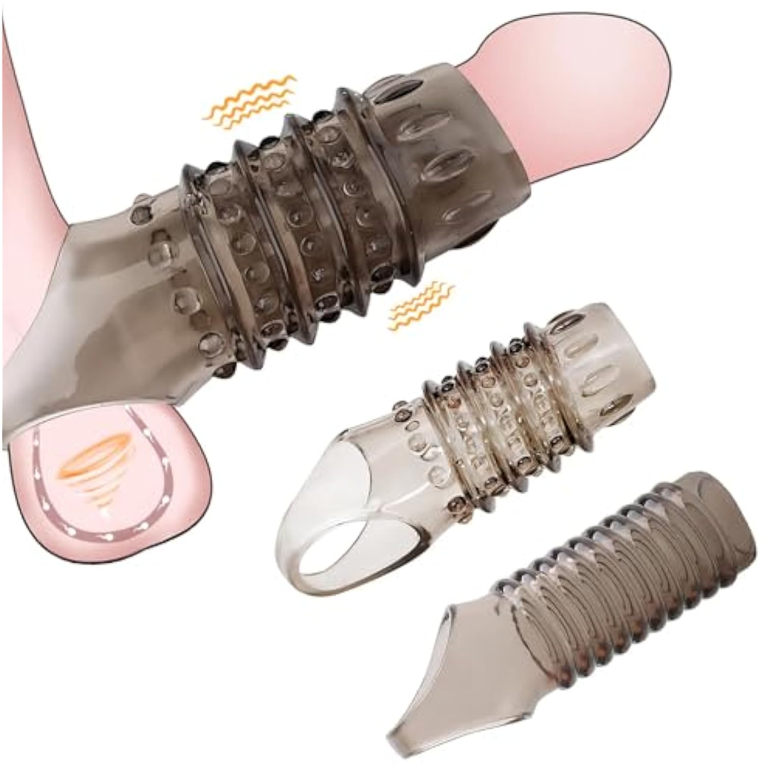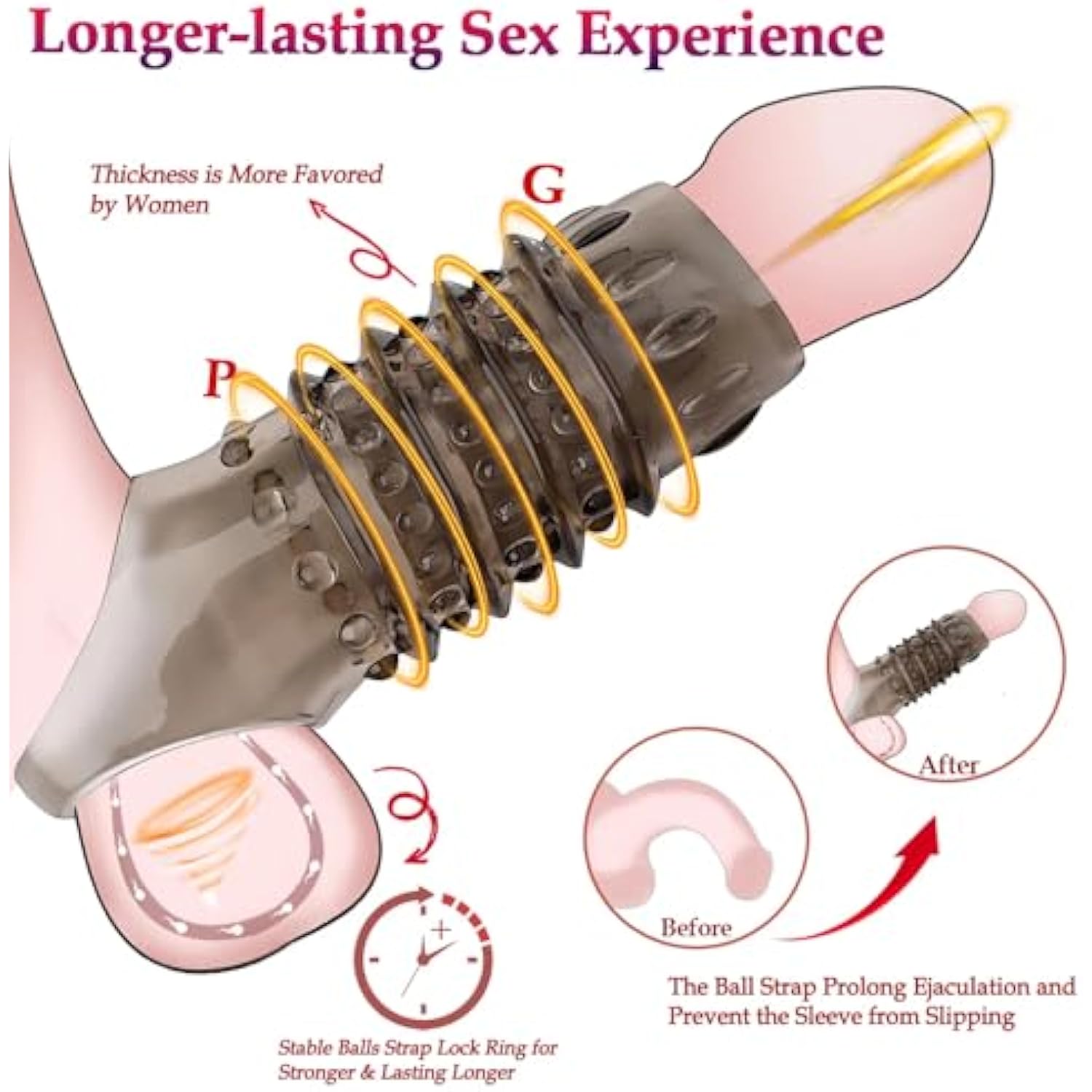 2 Pcs Reusable Cock Rings For Men, Penis Enlargement Sleeves, Delay Ejaculation Stronger Erection Enhancement Sex Toys Soft Realistic Silicone Penis Ring For Adult Male Couples(Black)