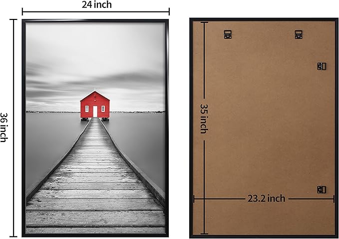 - 【UNIQUE DESIGN】: This 24x36 frame with aesthetic and modern design is ideal for displaying any of your favorite prints, pictures or photos in your home, office, photo studio, gallery, college, etc. (notice: If your poster or picture is very thin, please secure the backboard and frame with masking tape .)
