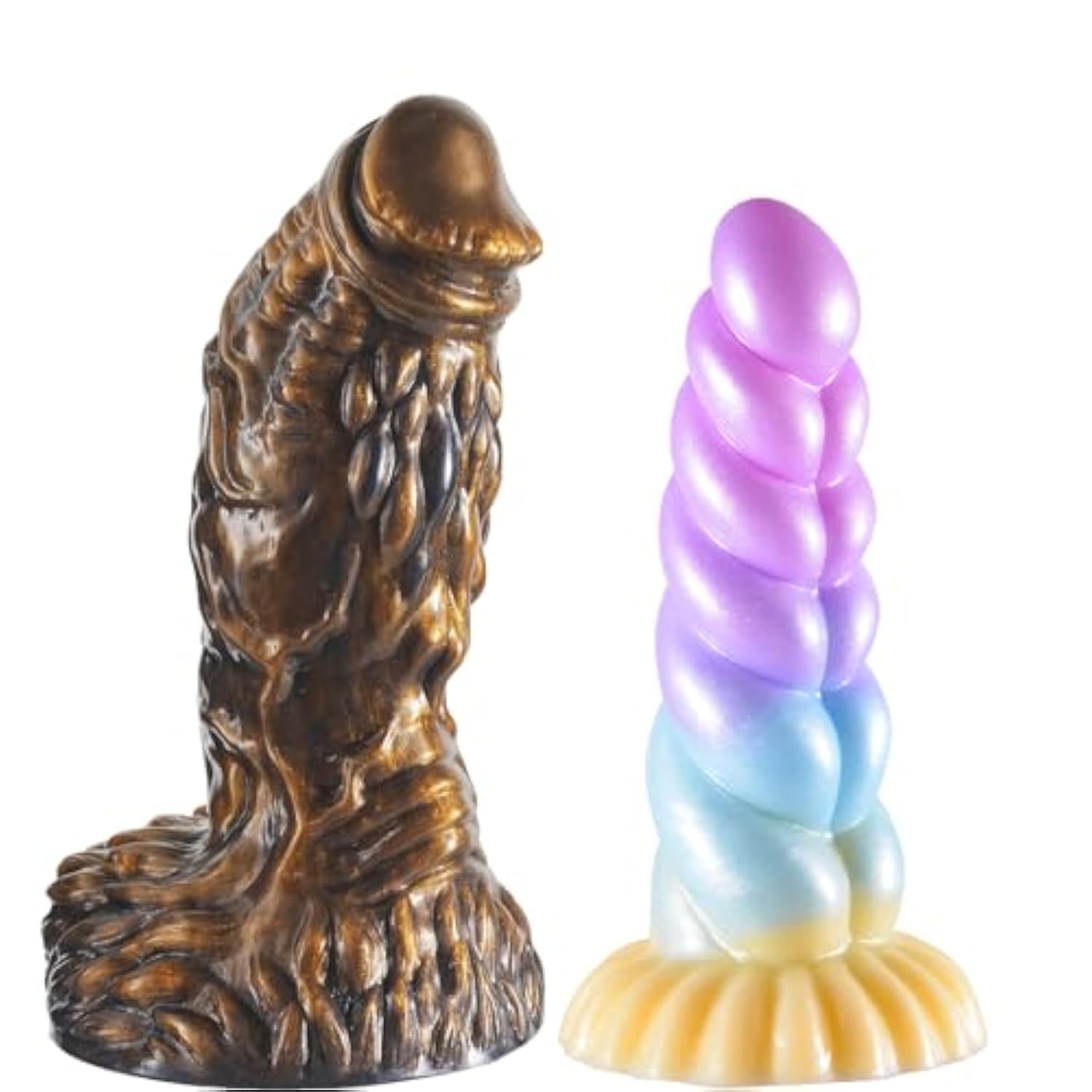 | ?Colorful Dildo?Glitter Penis Are More Beautiful, Mixed Color Pearl Blue/Pearl White/Shine Purple.Making It Not Just A Sex Toy For Pleasure, But A Piece Of Art To Display In Your Collection. | | ?Powerful Suction Cup?The Monster Dildo Comes With A Strong Suction Cup That Can Use This Hands-Free Toy During Solo Sessions To Keep Your Hands Free While Taking Care Of Other Areas. | | ?Unique Fantasy Penis?An Eye-Pleasing 8.09 Inches Long, Can Be Inserted 6.96 Inches.It Has Multiple Screw Texture Of The Penis Are Amazing And Give You A Unique And Super Cool Stimulation During Penetration For G-Spot Stimulation And Prostate Massage. | | ?Body Safe Liquid Silicone Material?This Big Dildo Is Made Of Soft Silicone Material,Body-Safe, And The Toy Itself Can Be Bent And Squeezed,The Flexible Shaft Can Adaptable To Different Angles And Directions, So Don'T Be Afraid To Get Experimental. | | ?Discreet Packaging?All Sex Toys Are Packed In Special Sealed Boxes, We Value Our