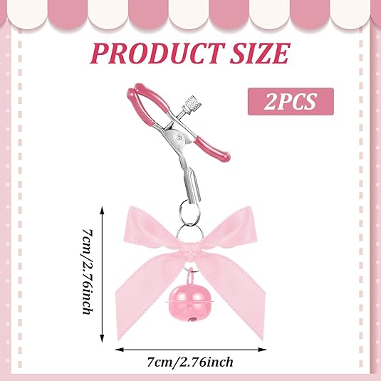 2PCS Non-Piercing Nipple Clamps – Adjustable Stainless Steel Bow Clips with Bells, Pink