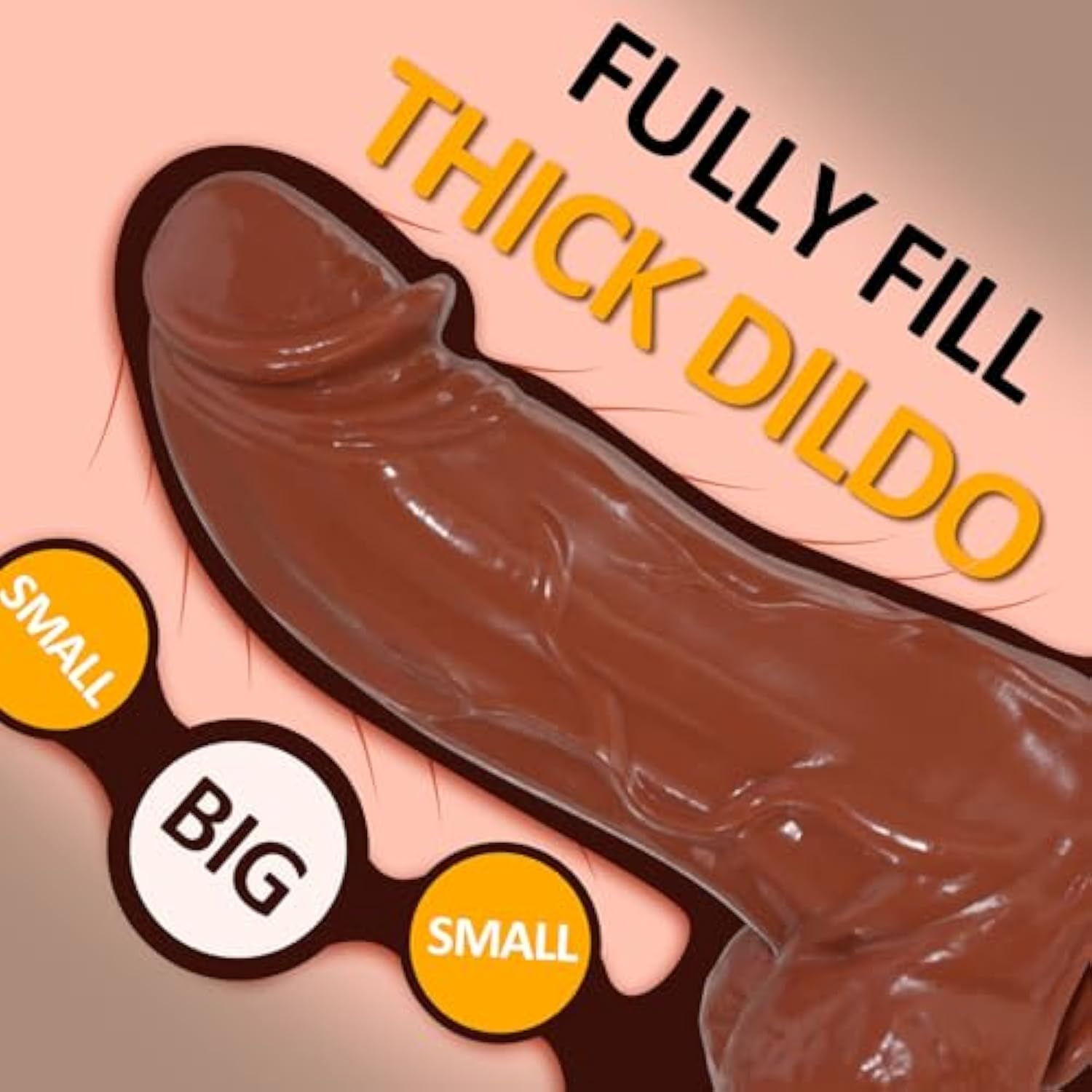 | Lifelike Designed: Experience Lifelike Pleasure With This Girthy Dildo!Our Big Brown Dildos Boast A Distinct Shape That'S Both Bold And Rugged. The Straight Shaft Of The Massive Dildo With Pronounced Textures,Which Can Bring More Friction. Accentuated By Prominent Veins And A Testicular Region That Adds A Stretchy,Lifelike Feel. | | Bigger Thicker Dildo: The Huge Dildo With A Length Of 12.87 Inch And 3.62Inch Girth Dildo,Offers A Penetration Length Of 9.88 Inch.Let You Experience The Fullness Like Never Before! Dive Into New Sensations And Explore The Depths Of Pleasure With This Larger-Than-Life Sex Toy. | | Body Safe Material: Our Thick Dildo Made From Pvc Safety Material,Strikes The Perfect Balance Between Firmness And Flexibility. It Is Very Soft And Extremely Flexible But Also Rigid Enough To Keep You Satisfied, Will Not Cause Damage To The Sensitive Parts Of Your Body. | | Powerful Suction Cup Dildo:This Sex Toy Has A More Stable And Powerful Suction Cup That Allows You To Mount This Big Boy On Any Hard, Smooth Surface And Ride To Your Heart'S Content. This Thick Dildo Is Even Compatible With Strap-On Harnesses For Men, Gay Men, Lesbians, Couples And More. | | Discreet Packaging:Packaging Carefully, There Is No Product Information On The Packaging!After Each Use, Wash The Thick Anal Dildo With Warm Water, Mild Soap And Then Pat Dry. | |
