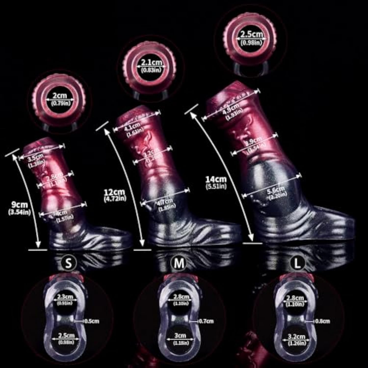| Made Of Silicone | | The Color Is Purple Black | | 3 Sizes :S:9*4*3.5Cm/3.54 *1.57*1.38Inch ,M:12*4.7*4.1Cm/4.72*1.85*1.64Inch, L:14*5.6*4.9Cm/5.51*2.2*1.93Inch | | Waterproof Hollow Penis Sleeve With Penis Ring Adult Sex Toy For Men ,3 Different Sizes Penis Extender Fit For All Men ,Soft Silicone Penis Sleeve Enlarger With Knot And Textures | | Discreet Package | |