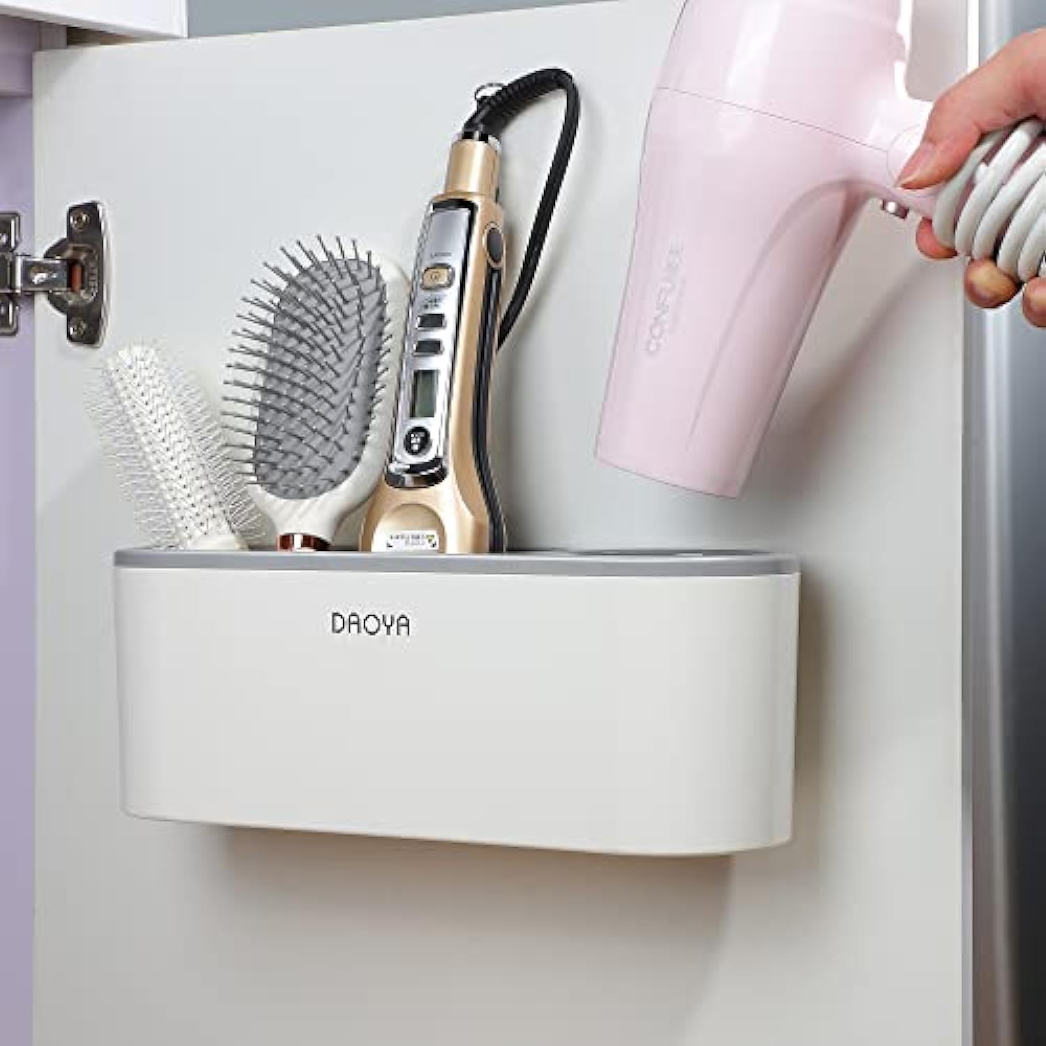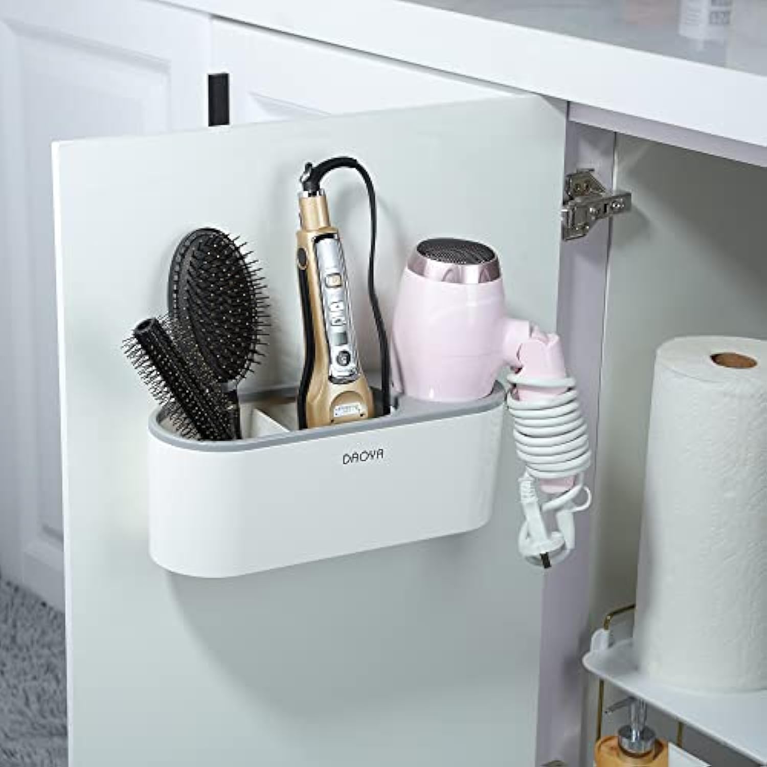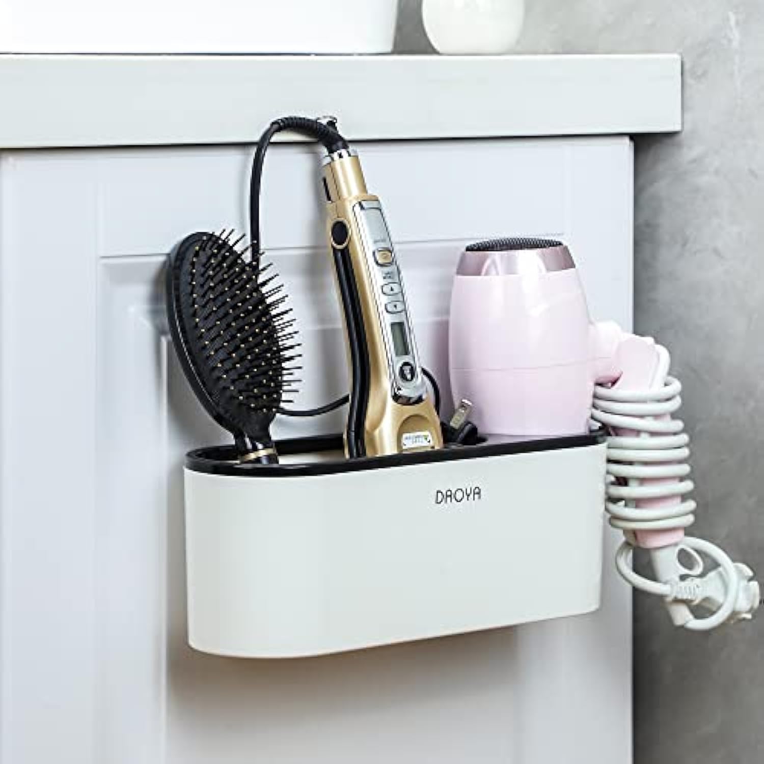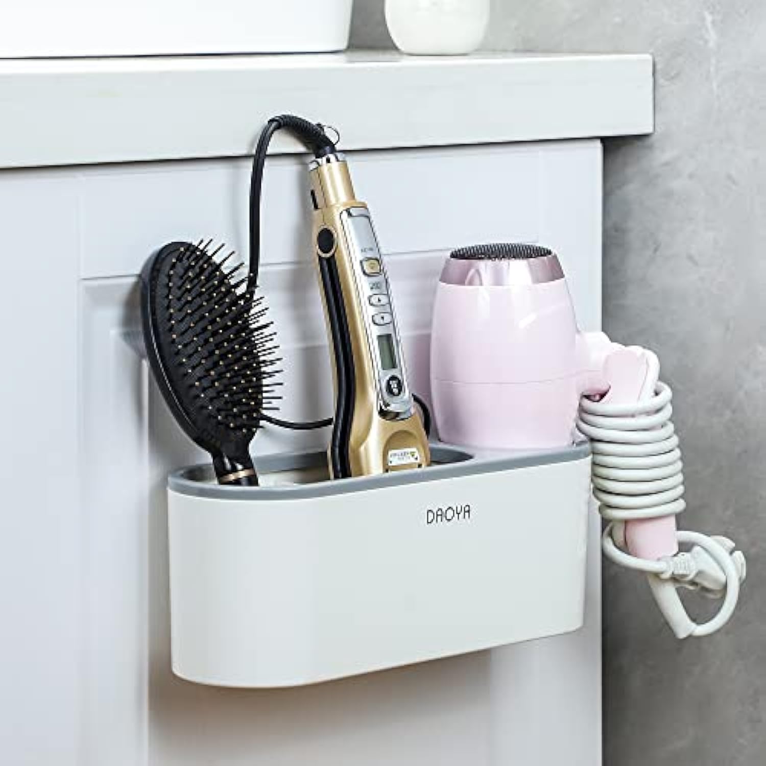 - Compact Construction: 3 compartments in 1 hairdryer holder - holds hair dryer, curling iron or hair straightener, hairbrushes, razors, combs or brushes well in one place, adding a simple and organized look to your bathroom.