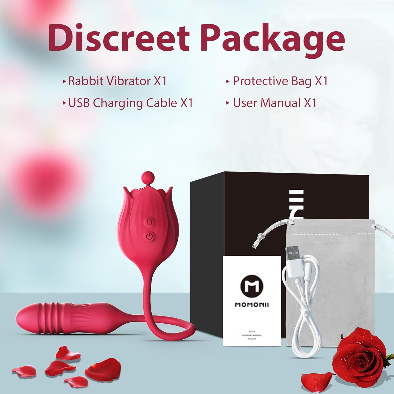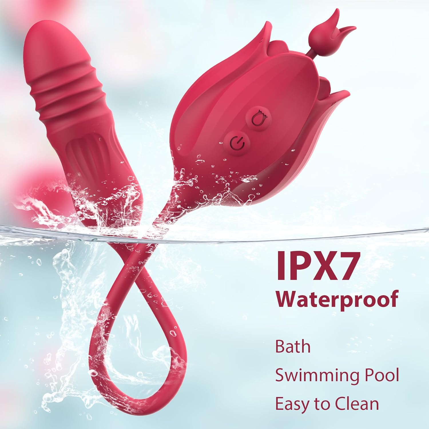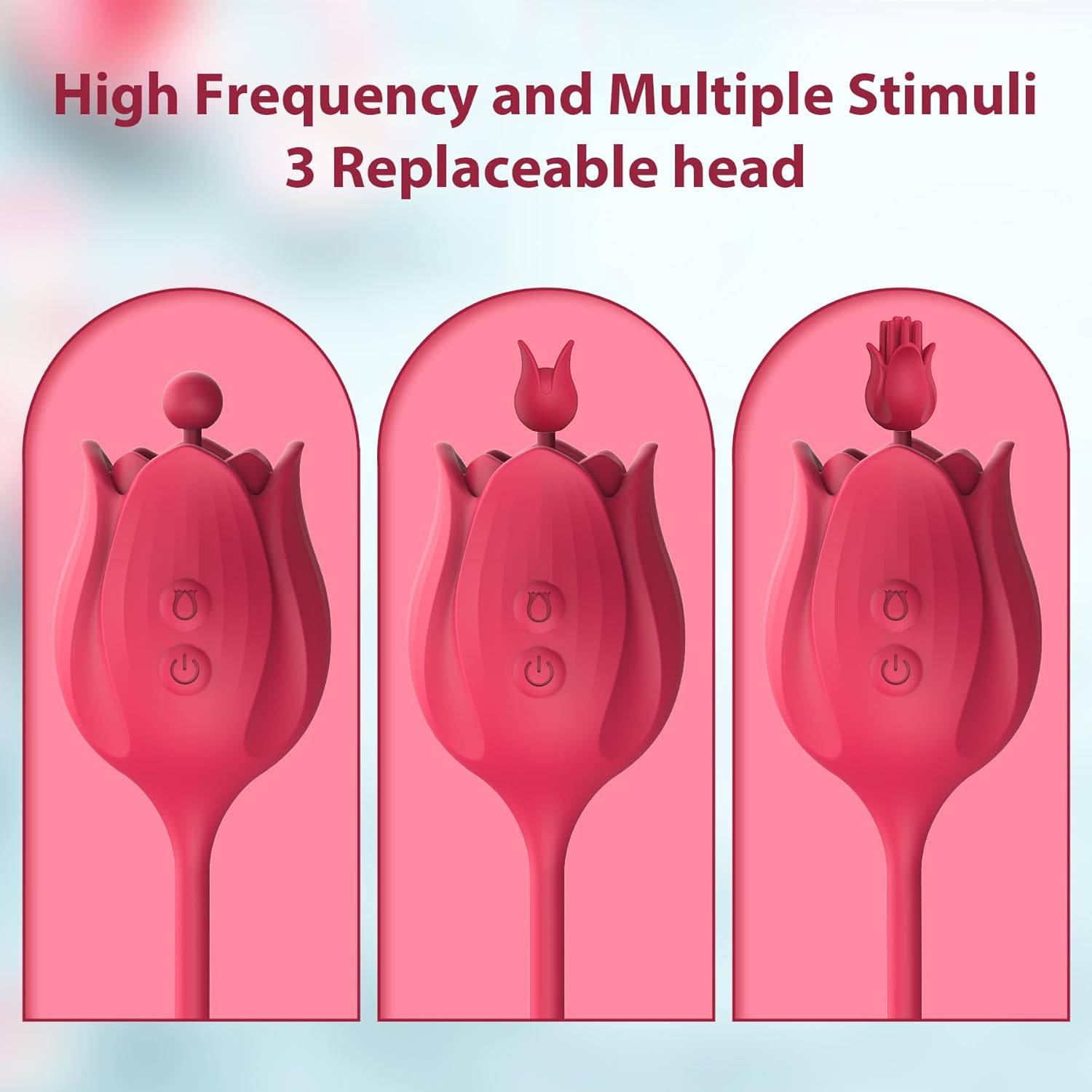 3-in-1 Multifunctional Design – This uniquely designed rose vibrator offers powerful stimulation with three replaceable heads. The high-frequency head delivers intense clitoral and nipple vibrations, while the other head features 10 thrusting and vibrating modes for deep G-spot pleasure. Both functions can be used simultaneously for an enhanced experience.