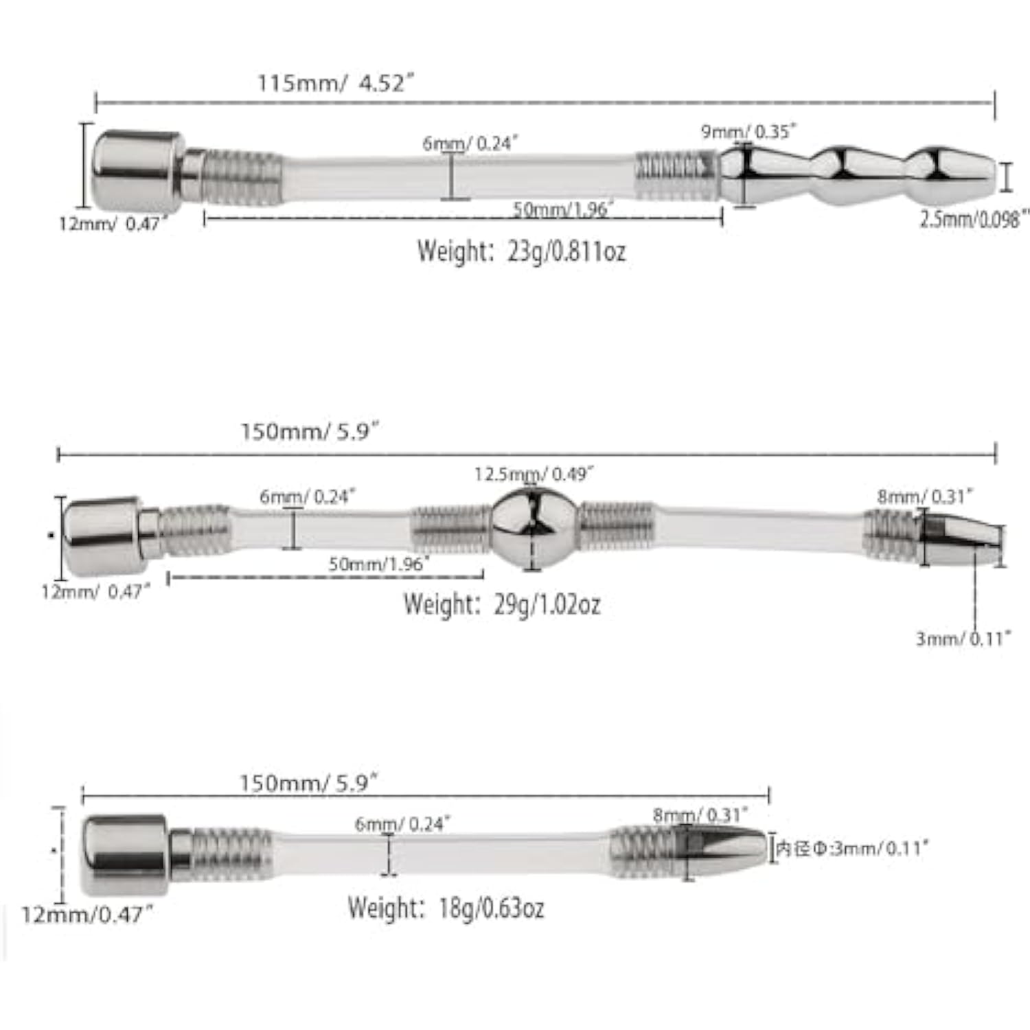 3 Pcs Urethra Trainer Set Chastity Lock Accessories Chastity Device Sex Toy Sound Urethral Plug Urethral Toy Urethral Masturbation Stick Catheter Sound Penis Plug Male Urethra Stimulation